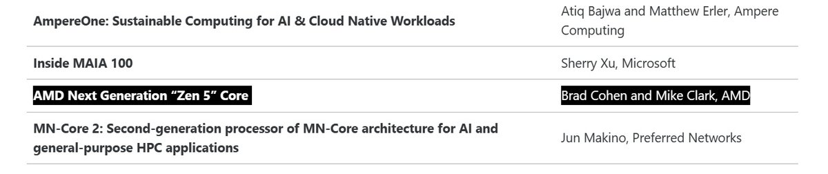 В презентации архитектуры Zen 5 поучаствует Майк Кларк, ведущий архитектор Zen. Обычно на Hot Chips проводят технические, а не маркетинговые презентации, то есть Кларк и его коллеги поговорят об инженерных аспектах архитектуры.