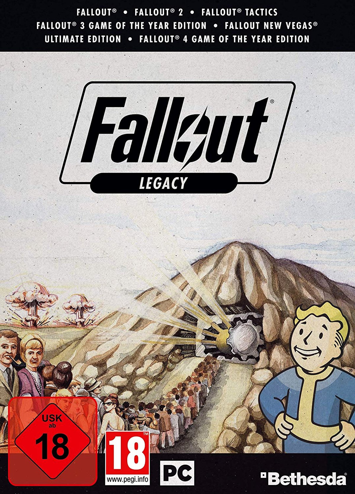 За 39.99 евро покупатели сборника получат коллекцию из шести игр серии Fallout: Fallout, Fallout 2, Fallout Tactics, Fallout 3, Fallout New Vegas, Fallout 4. Три последних проекта поставляются в GOTY-версиях со всеми выходившими дополнениями.