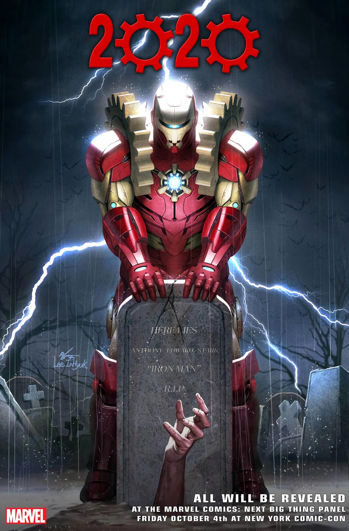 4 октября на New York Comic-Con команда Marvel Comics представит комикс Iron Man 2020, посвященный необычному будущему Железного человека. Пока у нас есть только обложка, созданная Инхьюком Ли — на ней один Железный человек стоит над могилой другого.
