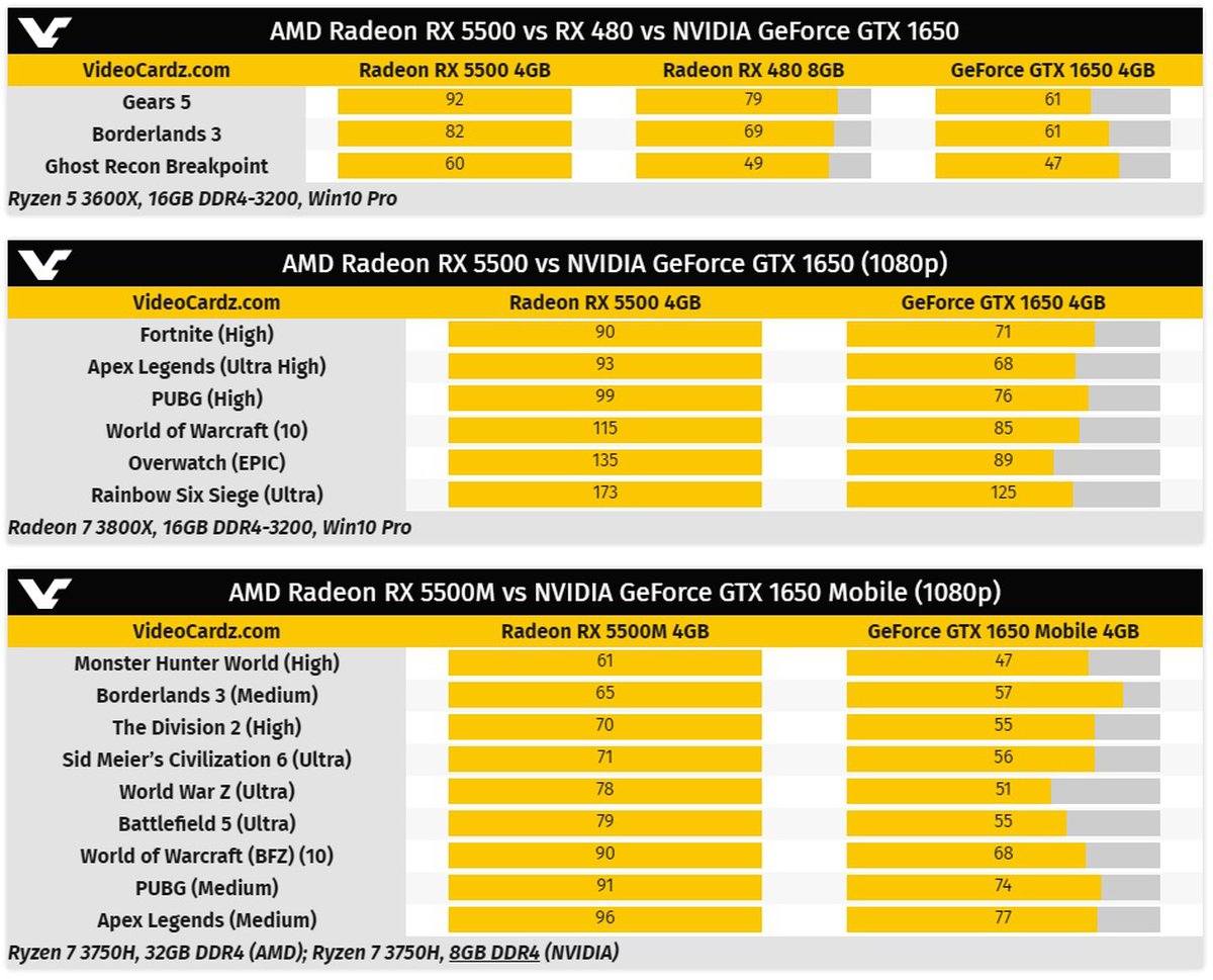 Помимо десктопных версий карт AMD выпустит мобильную Radeon RX 5500M. Устройства должны стать прямыми конкурентами GeForce GTX 1650 и Radeon RX 480, по производительности их будет обходить базовая RX 5500.