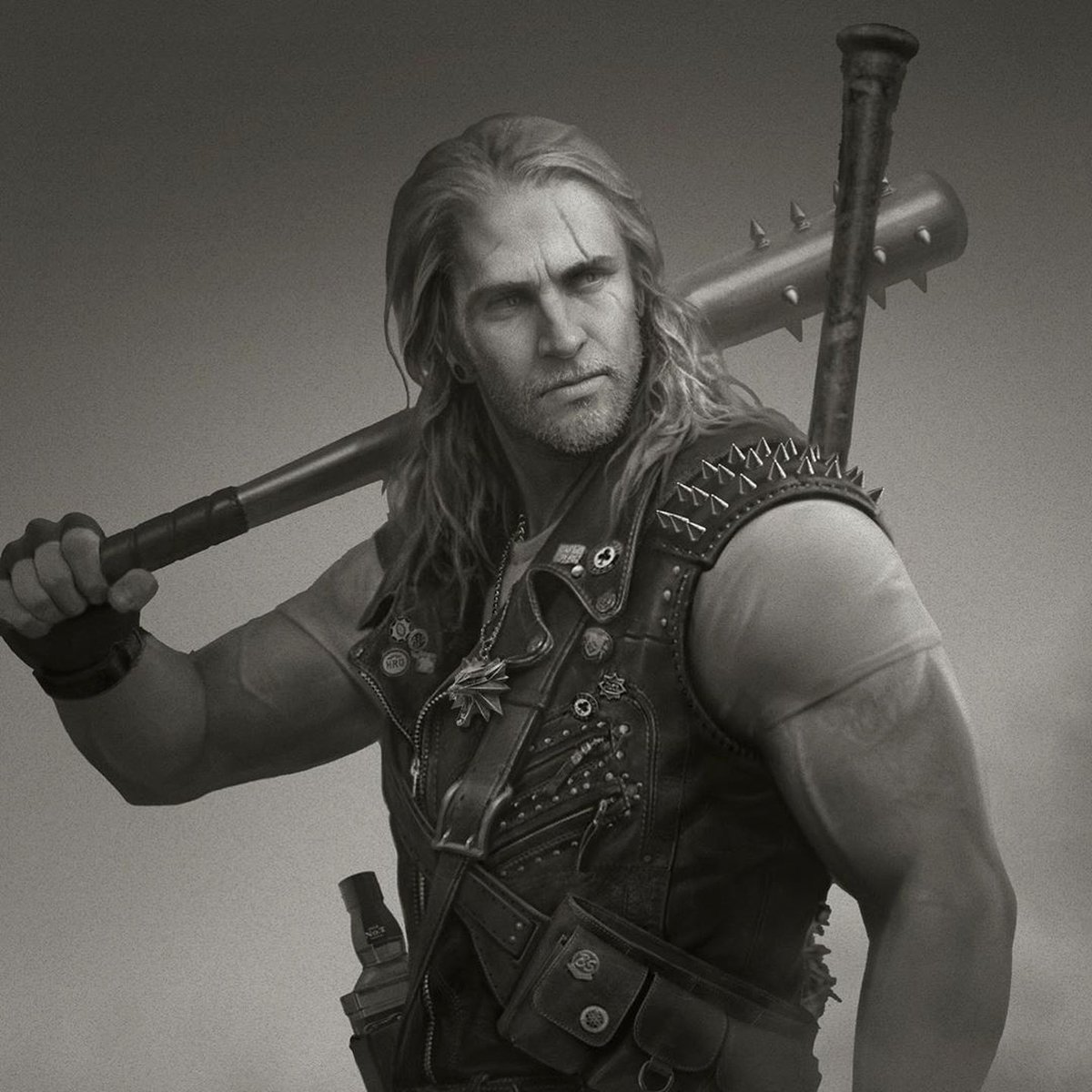 Интересно, что в Instagram Романа можно отыскать альтернативную версию Геральта. Дизайн персонажа здесь ближе к игровому; правда, вместо двух клинков Геральт-байкер, видимо, носит две биты.