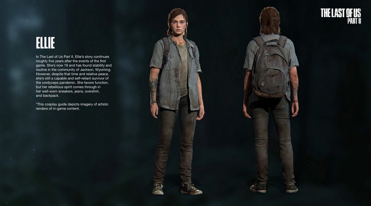 Студия Naughty Dog опубликовала косплей-гайд Элли, главной героини The Last of Us 2. В документе подробно описывает и демонстрируется как внешность девушки, так и ее снаряжение. Косплеерам предлагается несколько вариантов Элли — с обычным, грязным и окровавленным лицом.