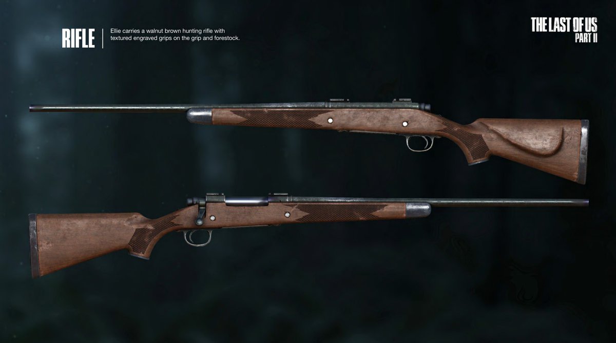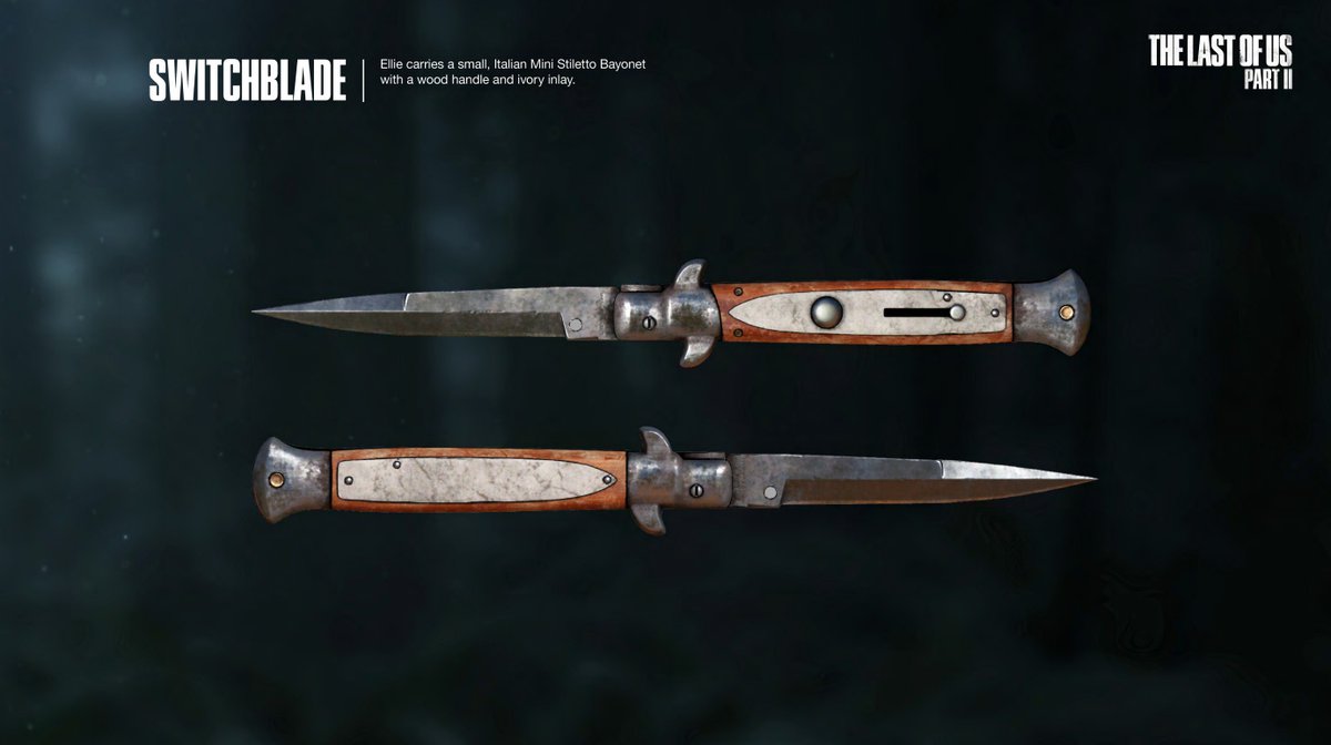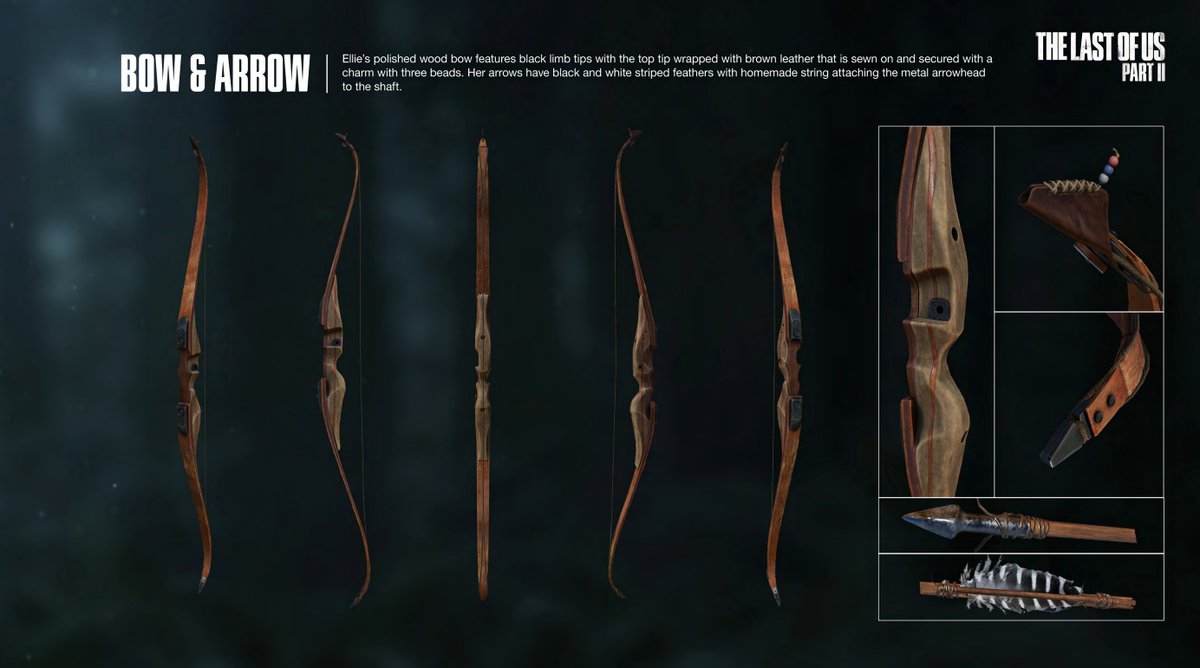 Наконец, есть описание и рендеры оружия Элли: ее выкидного нажа итальянского производства, деревянного лука, охотничьей винтовки и мачете довольно зловещего вида, покрытого ржавчиной — и, кажется, каплями крови.