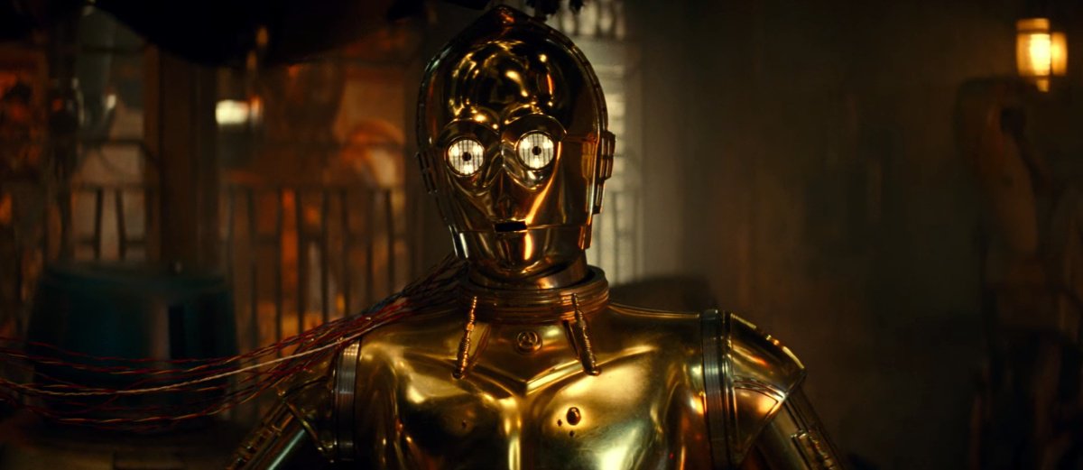 В отрывке с C-3PO, модифицированном Бабу Фриком, незаметно появляется боевой дроид из приквелов — обратите внимание на правую часть кадра.