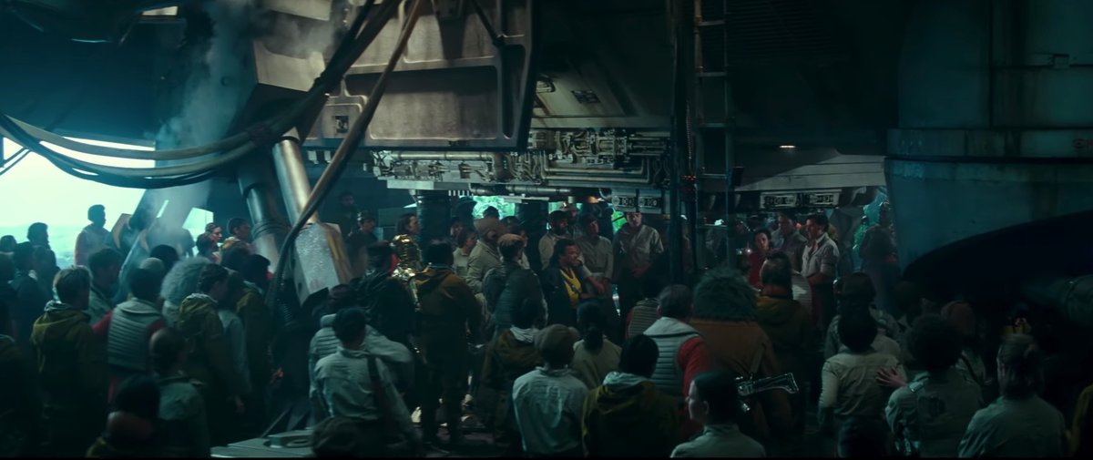 Видите мон-каламари в центре кадра? Фанаты считают, что это Афтаб, сын адмирала Акбара, геройски погибшего во время атаки флота Первого Ордена в «Последних джедаях». Похоже, тут Афтаб вместе с Ландо Калриссианом и По Дэмероном обсуждают битву.
