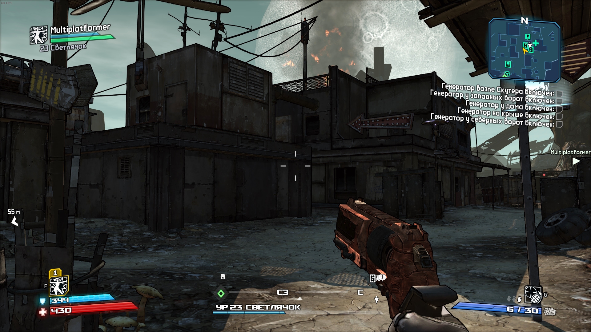 Про открытый мир и геймплей совсем кратко, ибо о них нечего толком и сказать. Мир действительно достаточно большой, но он абсолютно пустой. При создании игры разработчики вдохновлялись игрой Fallout и фильмами о Безумном Максе, именно отсюда у нас 80% мира — пустыня, а остатки похожи на Fallout 3, вот только абсолютно пустую. Собственно задержкой в дате выхода игры и послужил Fallout 3, а также игра Rage, в совокупности которые сильно походили на нашу игру.