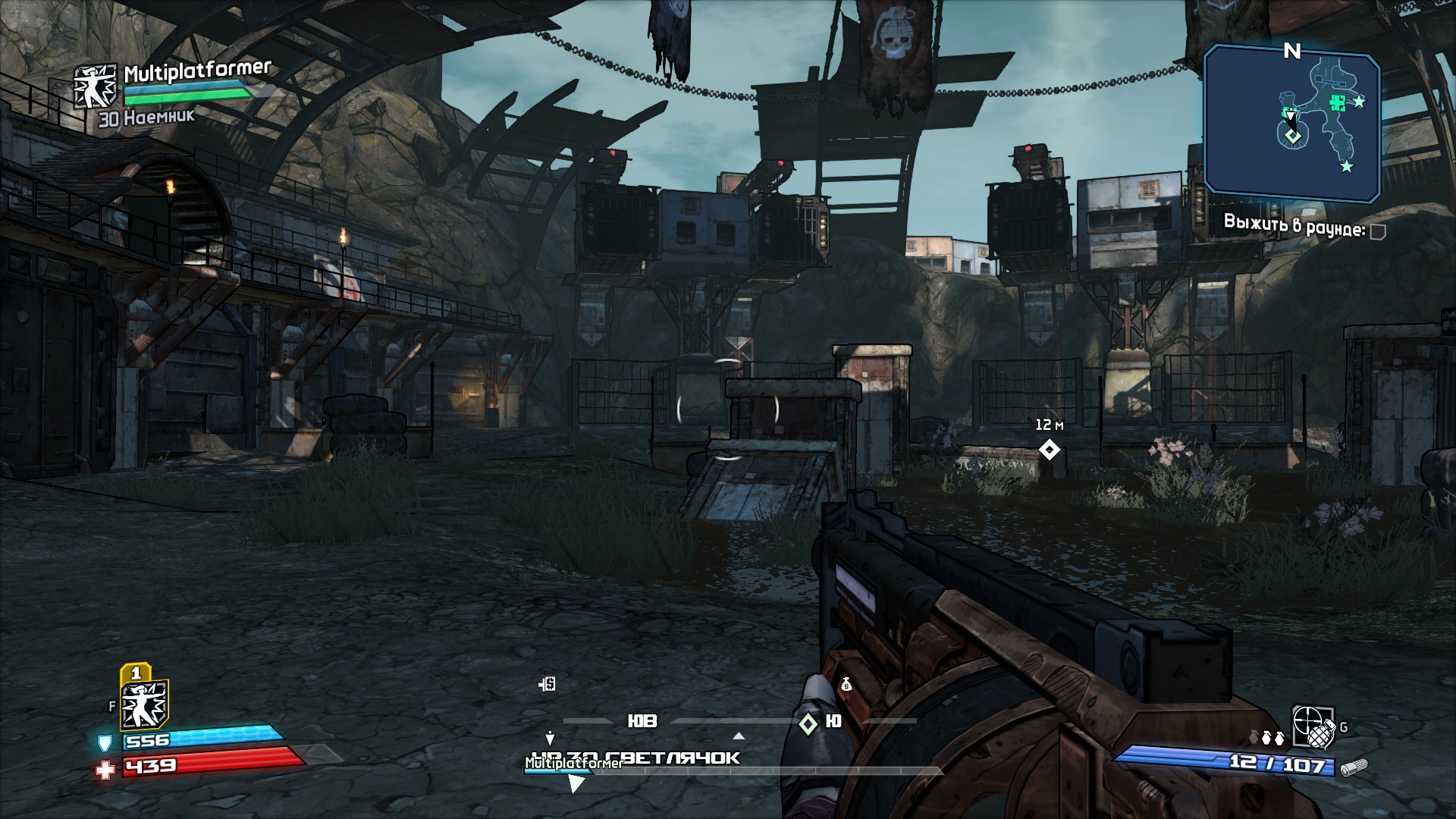 На карте указано, что здесь есть магазин оружия. У меня он был, хотя воспользоваться им, почему-то, было нельзя. Тем временем, мой напарник сидел и не понимал, о каком магазине я говорю? Оказалось, в одном и том же месте, у меня он был, хоть и не рабочий, а у него нет. Мило.