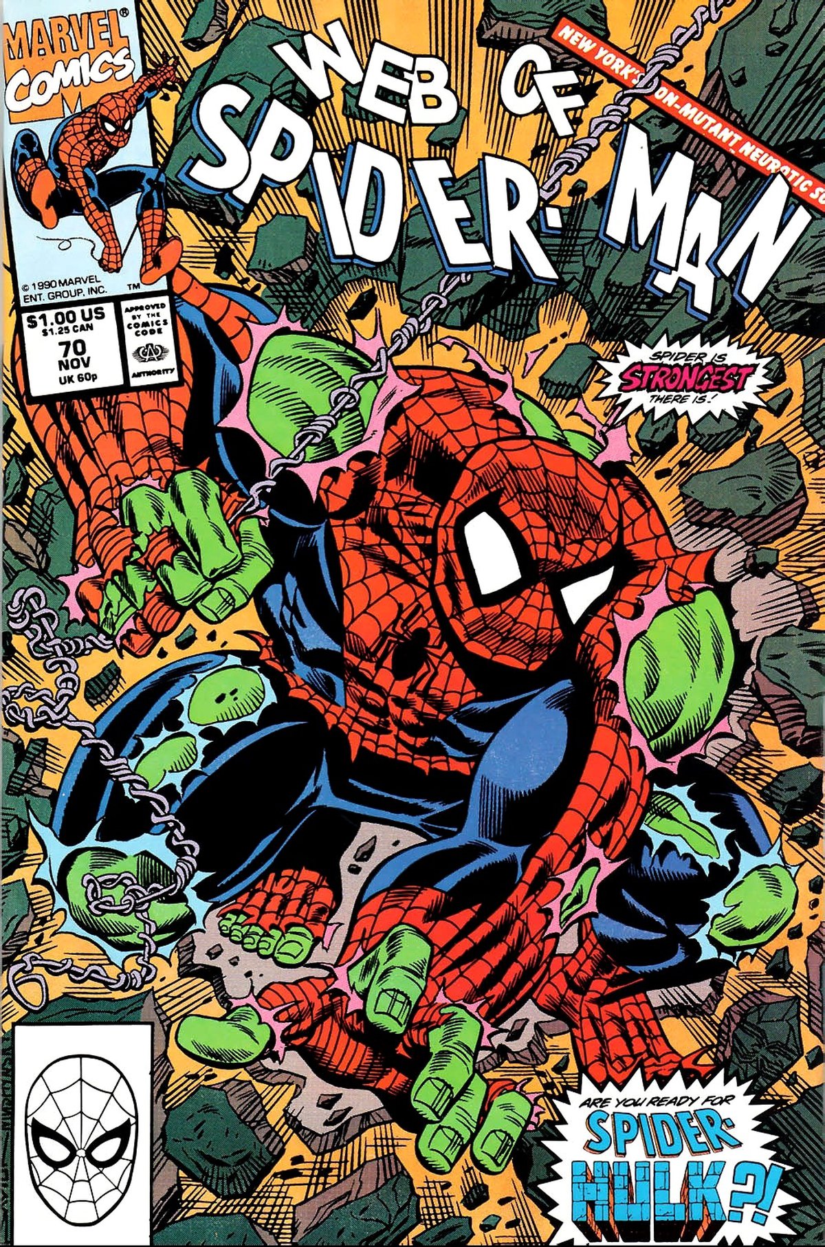 Это не первый случай, когда Питер Паркер становился Халком - еще в 1990-х годах в серии Web of Spider-Man в выпуске № 70 Человек-Паук ненадолго стал Халком благодаря поглотителю энергии, который поразил двух героев в предыдущем выпуске.