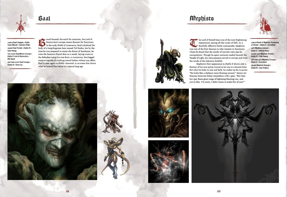 Четвертая часть Diablo на этих страницах не упоминается, но утекшая страница с Лилит явно взята из этого же артбука — стиль оформления точно такой же. Зато здесь есть упоминание Diablo Immortal: в этой игре вновь вернется Баал.