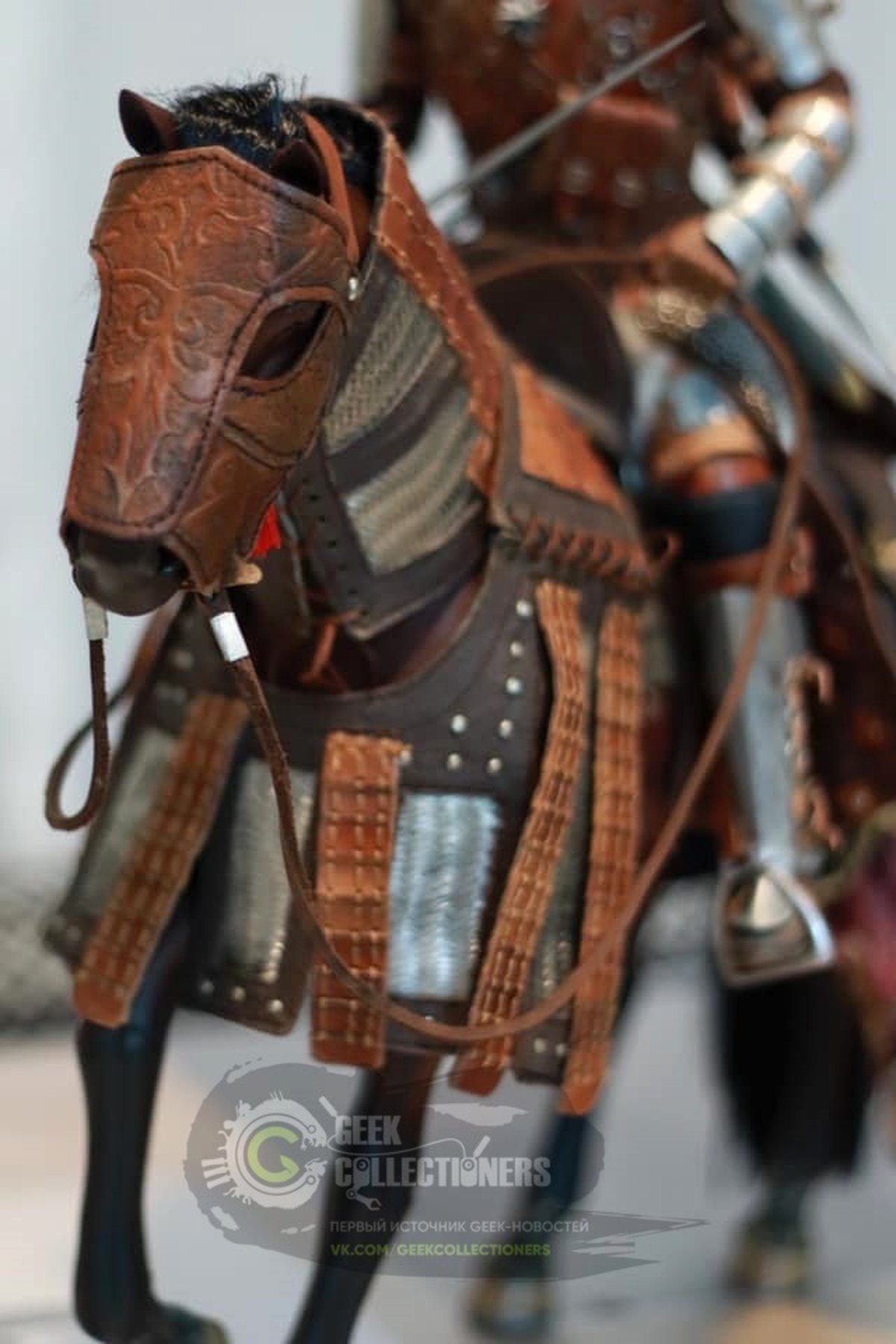 Генри-Геральт здесь одет в тяжелую броню в стиле The Witcher 3 Wild Hunt, к седлу приторочен характерный трофей. Обратите внимание на ведьмачий медальон: он не плоский, как в сериале, а фигурный — как в игре CD Projekt.