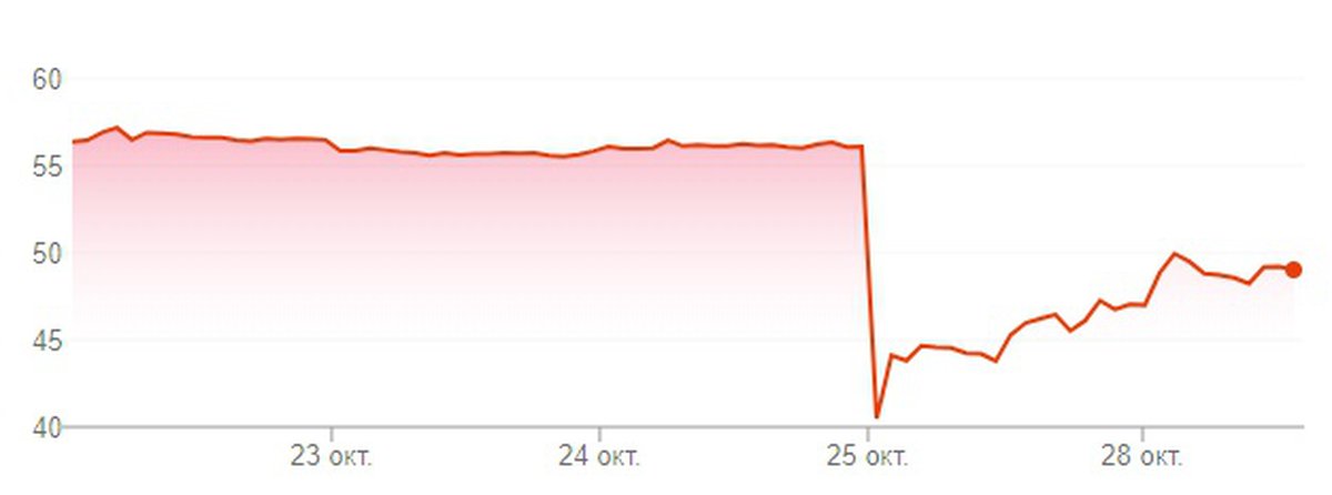 Хотя на графиках падение выглядело пугающе, в Ubisoft вряд ли сильно переживали по этому поводу. Начиная со второй половины дня 25 октября — это следующий день после переноса игр — стоимость акций компании почти непрерывно растет.