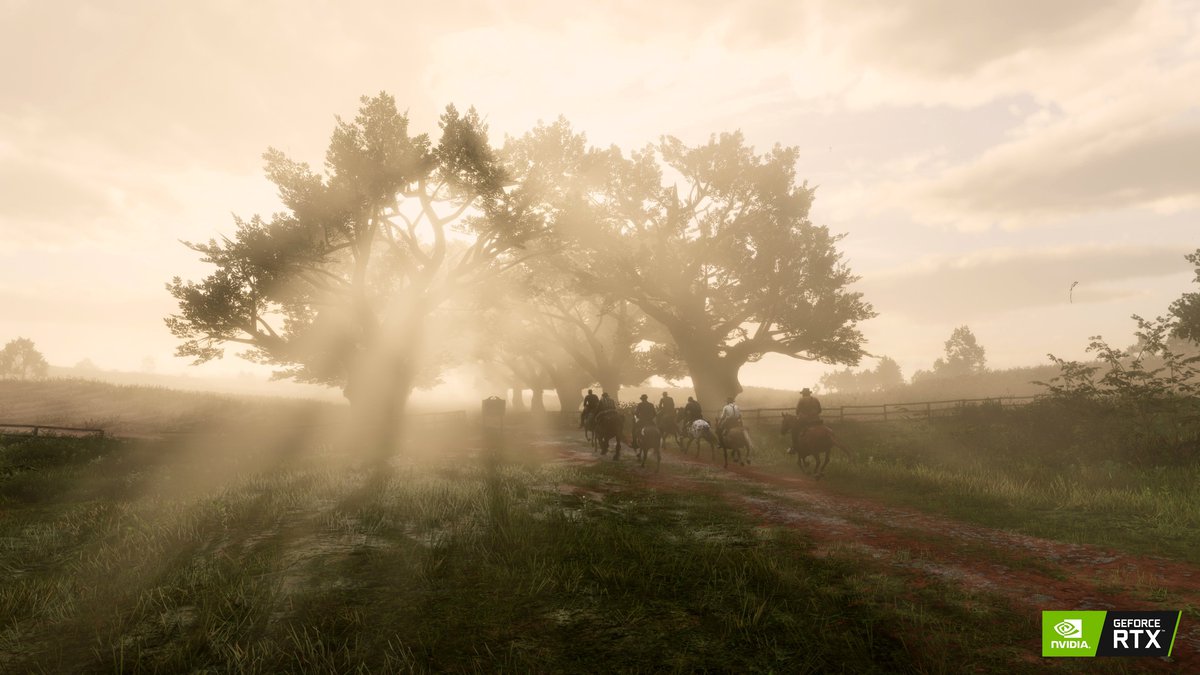 В первой версии этого текста говорилось, что на скриншотах показана игра с включенной трассировкой лучей. Это ошибка. Присутствие в RDR 2 трассировки лучей не подтверждено официально — мы приняли логотип GeForce RTX, присутствующий на скриншотах, за логотип RTX ON. Приносим извинения.