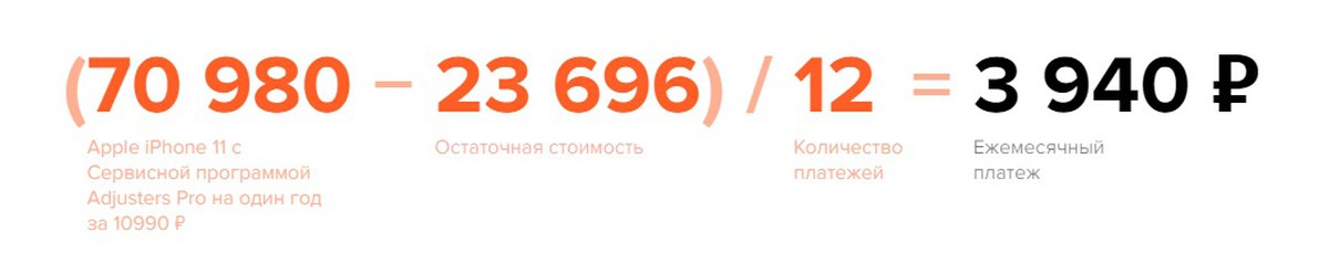 Год аренды базового iPhone 11 обойдется в 70980 рублей. При этом новый смартфон аналогичной модели стоит всего 59990 рублей, то есть на 10990 рублей дешевле. Эта разница возникает из-за годовой сервисной программы, позволяющей бесплатно заменить разбитый экран смартфона. При аренде отказаться от нее нельзя.
