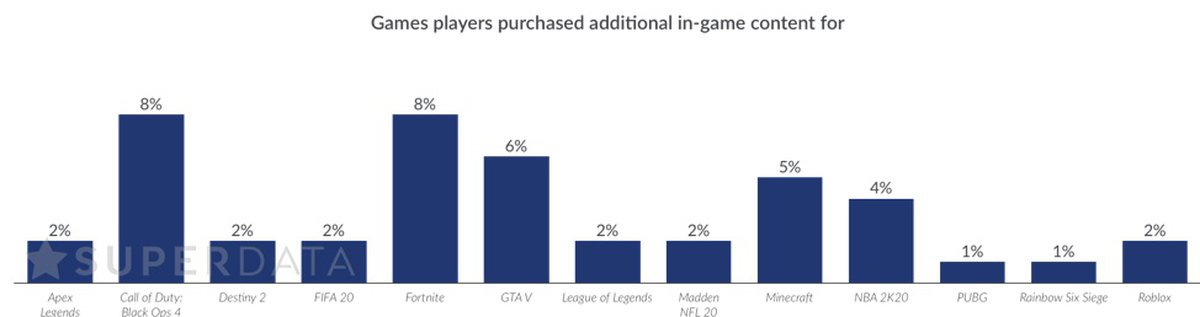 Новые релизы тоже не всегда оказываются успешными с точки зрения микротранзакций. Например, в октябре 51% игроков, покупки которых проанализировали SuperData Research, не тратили деньги на внутриигровые покупки: их не смогли заинтересовать крупные релизы вроде FIFA 20 или NBA 2K20.