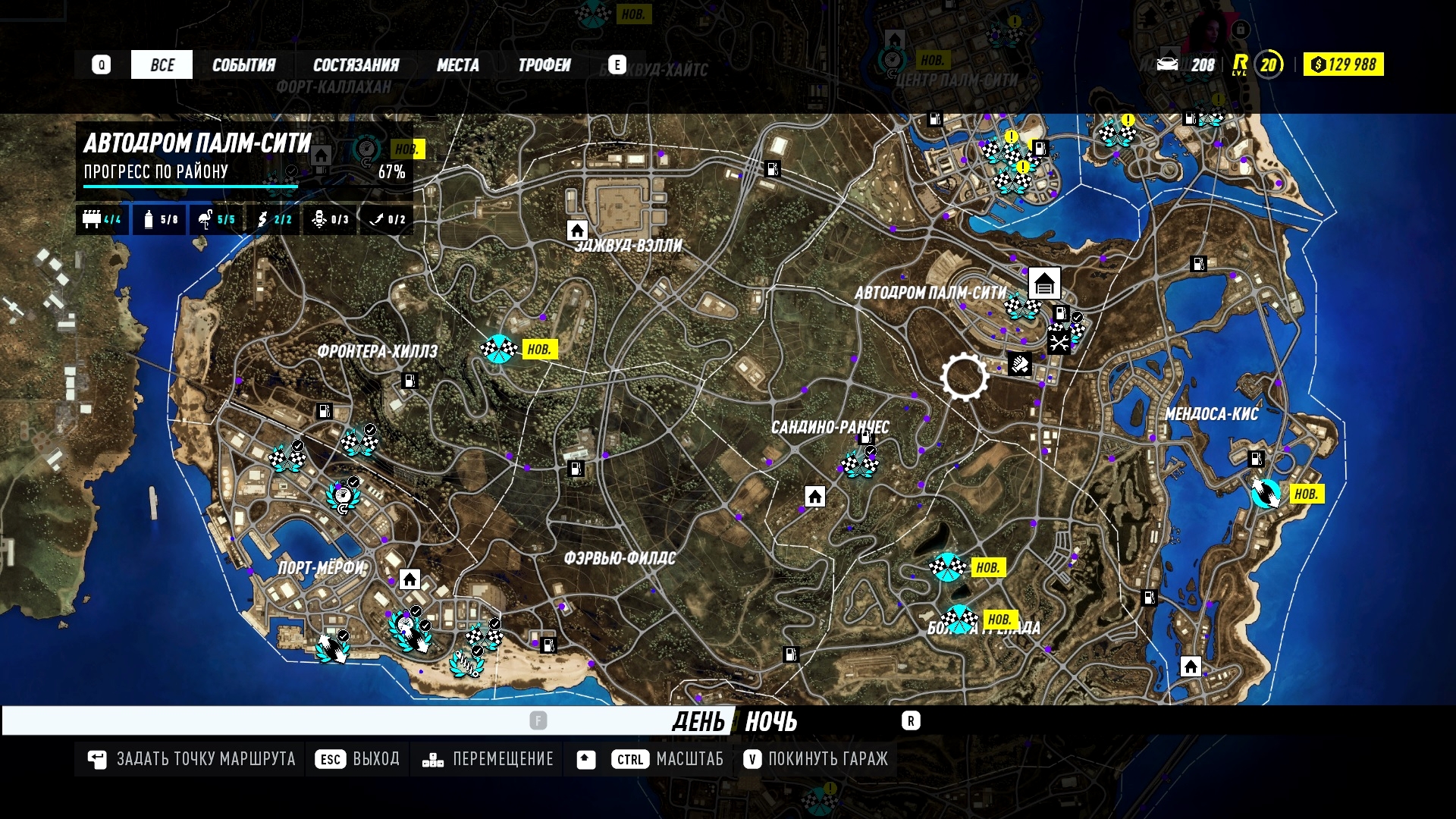 О наполнении игрового простора событиями и всякими там сюжетными поворотами - ощущается наследие Payback и старых NFS. По мере похождения заездов открываются все новые гонки, но не по одной, как в предыдущей игре, а скопом, по всей карте. Есть испытания на скорость, дрифт и прыжки, привязанные к точкам на карте и активные в свободном вождении. Так же можно сбивать щиты (которыми копы якобы пугают гонщиков - ох маразм же...), искать граффити и спасать город от нашествия розовых, неоновых фламинго. Все точки интереса сгруппированы по районам игры и дают награды: за нахождения одиночного экземпляра - деньги и/или репутацию, за сбор всех на районе - уже плюшки к стайлингу или больше денег и респекта, а если выполнить вообще все события одного типа, то можно получить новые колеса. Неплохо и уж точно лучше невнятных фишек из Фортуна-Вэлли.