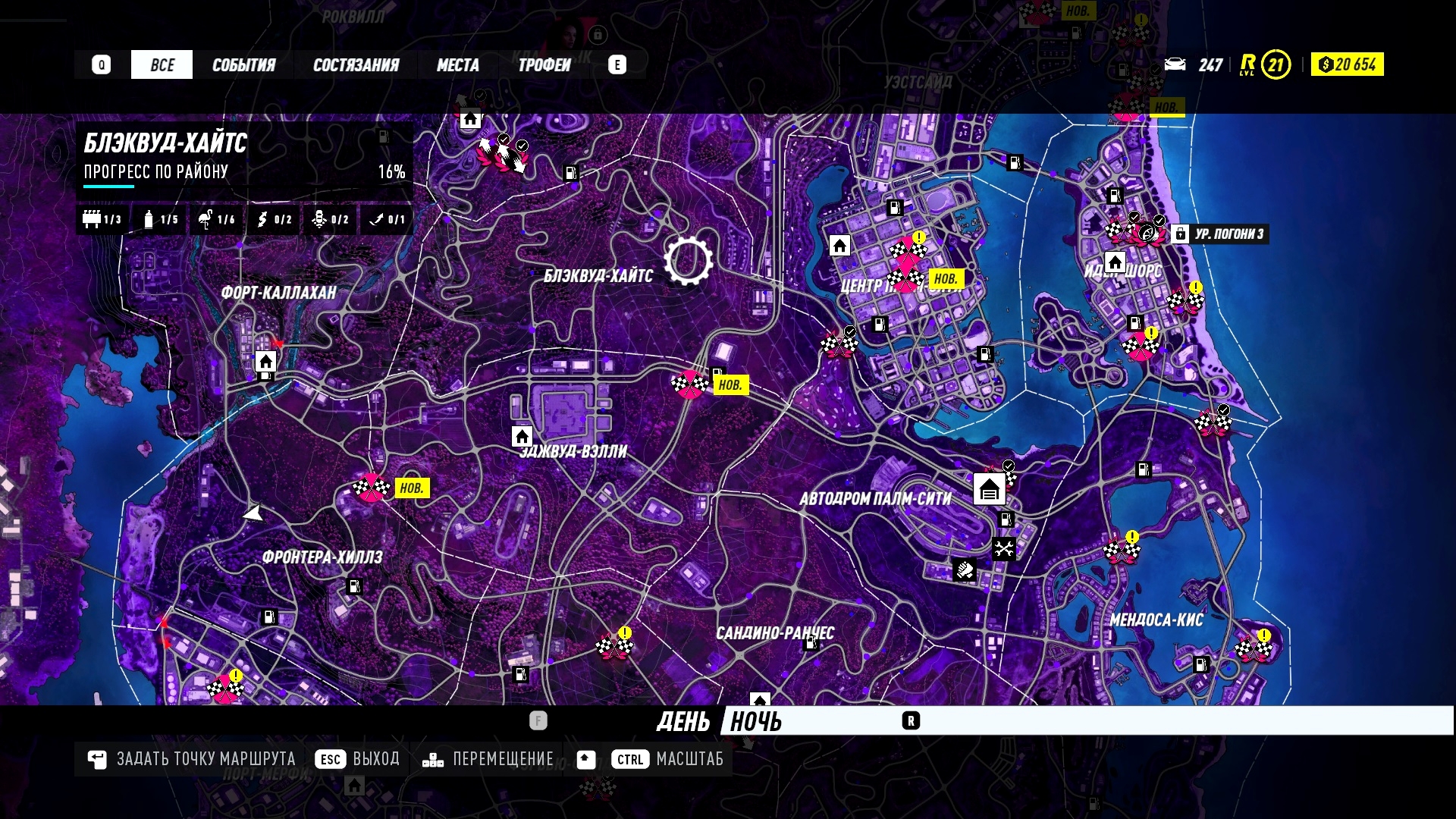 Через NPC тебе постоянно будут напоминать, что первый город это еще не вся игра. Совет верный, стоит погонять по карте - обкатаешь тачку, найдешь новые принты, может ввяжешься в погоню. Так же это поможет открыть новые убежища, которые станут точками быстрого перемещения, если будет лень катить через весь край к новой гонке. Главное помни, брат - фламинго рядом.