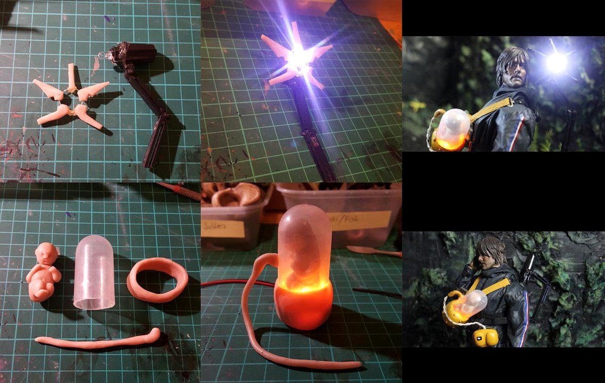 У себя в твиттере SpartanUruk опубликовал фотографии фигурок и части реквизита, а также показал процесс их изготовления. Некоторые из предметов частично функциональны: например, у колбы с ББ есть подсветка.