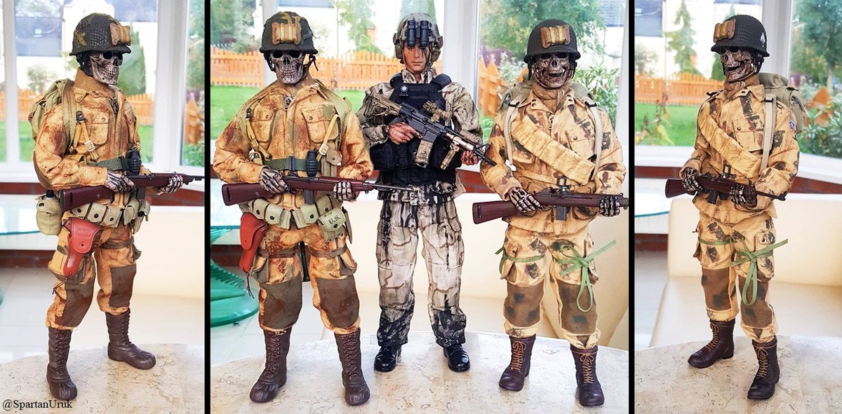 Фигурки в масштабе 1 к 6 сделаны из пластилина и пластика.