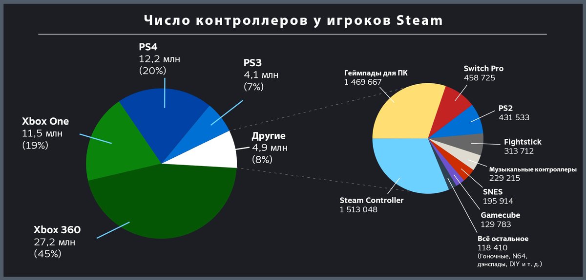 Год назад у пользователей Steam было полтора миллиона контроллеров.