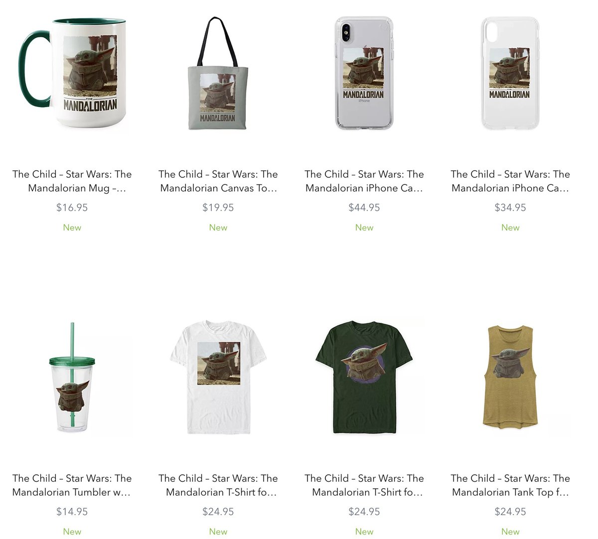26 ноября Disney все-таки анонсировал линейку сувениров с «маленьким Йодой», и выглядит она не очень хорошо. Фанаты получили несколько футболок, кружку, сумку и чехлы для телефонов, на которые нанесено одно и то же изображение: концепт-арт «маленького Йоды», созданный Кристианом Алзманном.