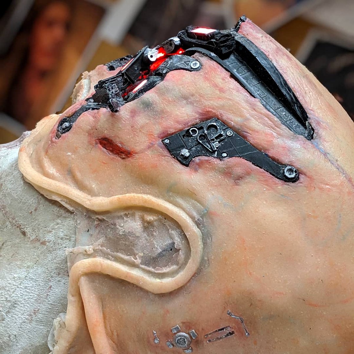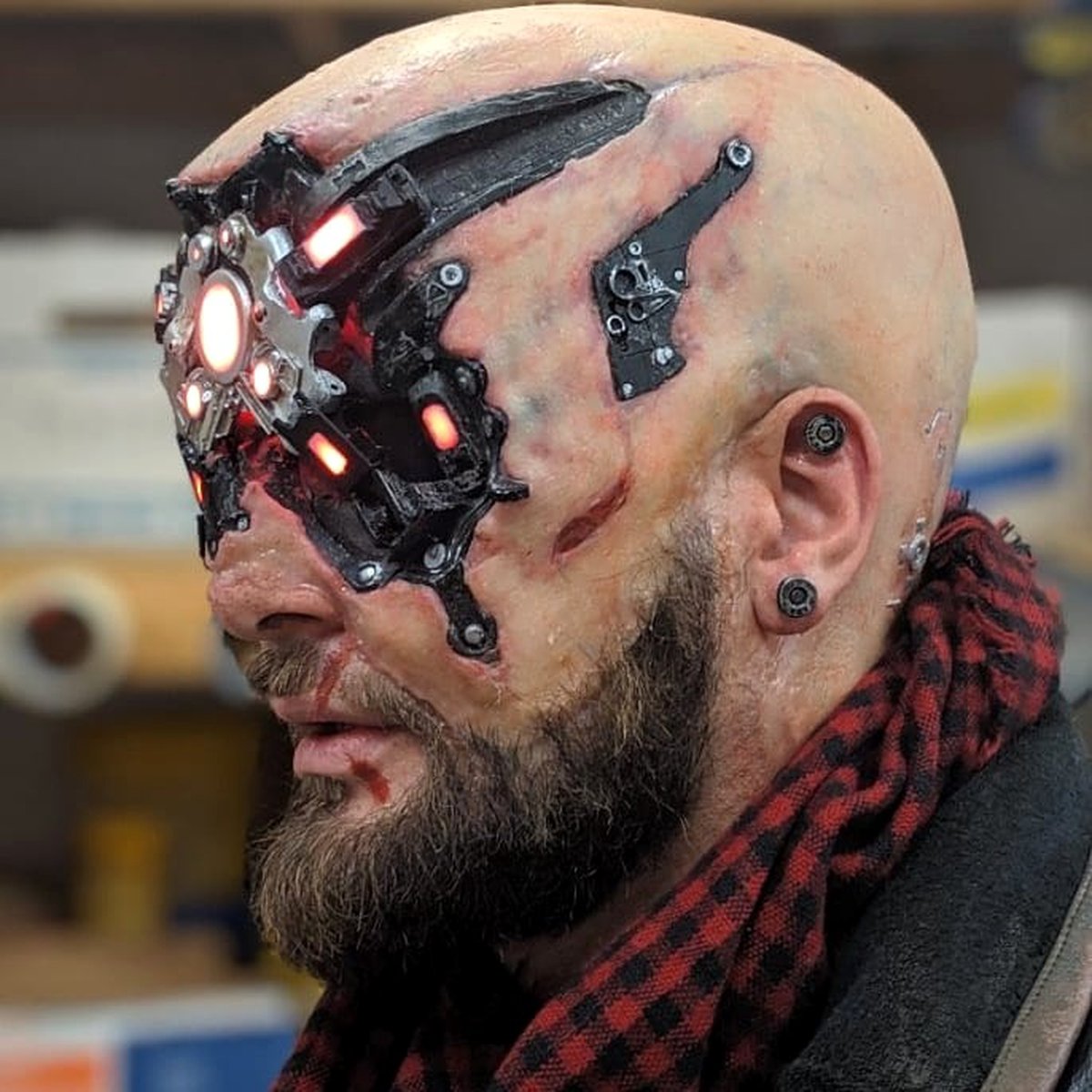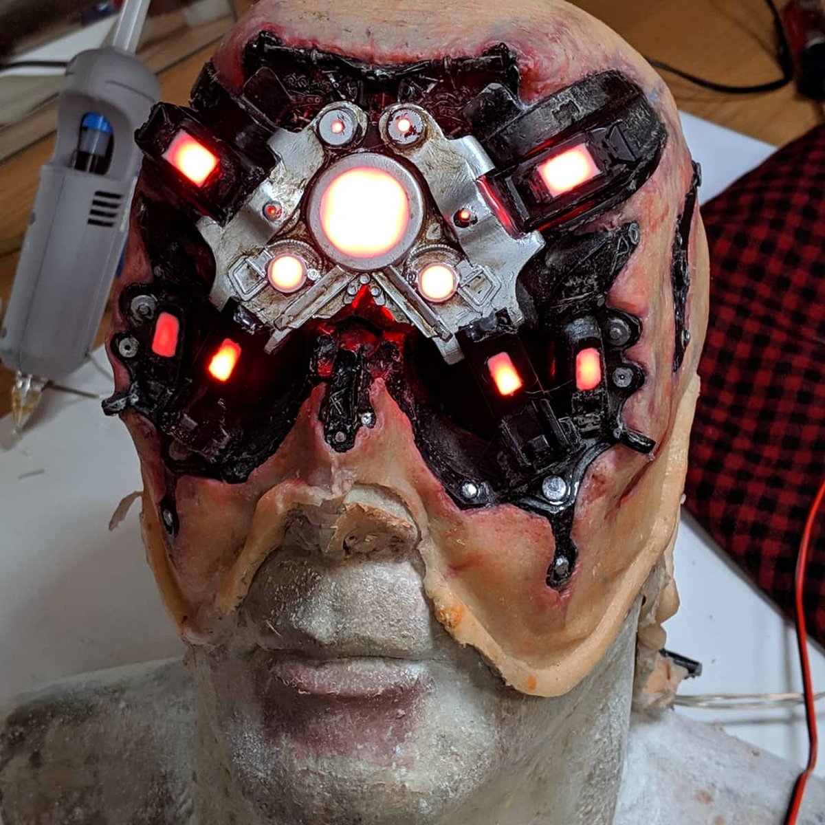Маска выглядит так, словно косплееру и правда что-то вживили.