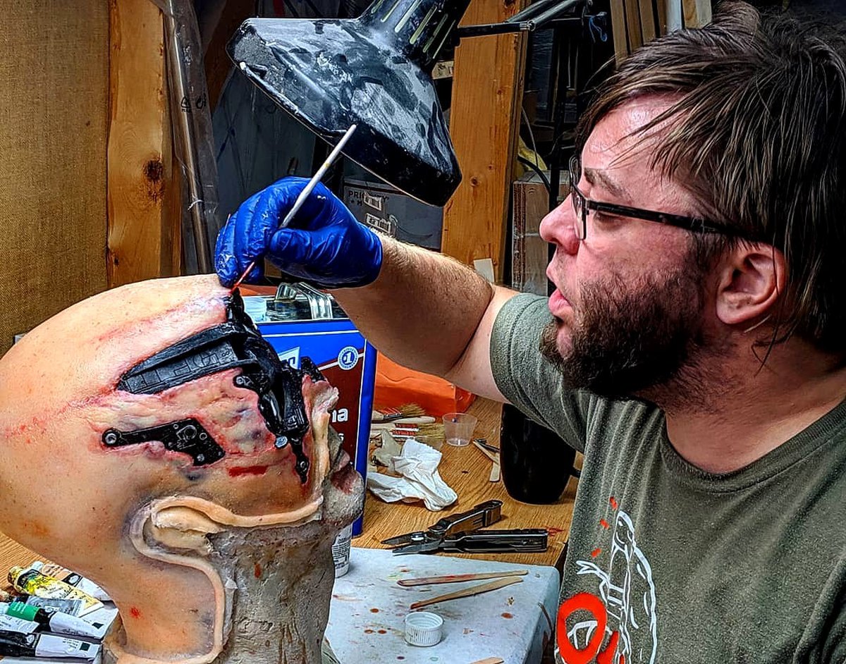 В маске и гриме Ларри выглядит так, словно ему и правда заменили половину лица. Косплеер проработал маску максимально подробно: тут отлично прорисована текстура кожи, воссозданы жилки, сосудики и воспаления в области установки имплантов.