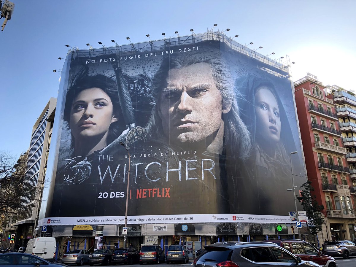 Один из самых крупных рекламных баннеров сериала появился в Испании. Полотном с изображением Геральта, Йеннифер и Цири завесили фронтон восьмиэтажного здания.