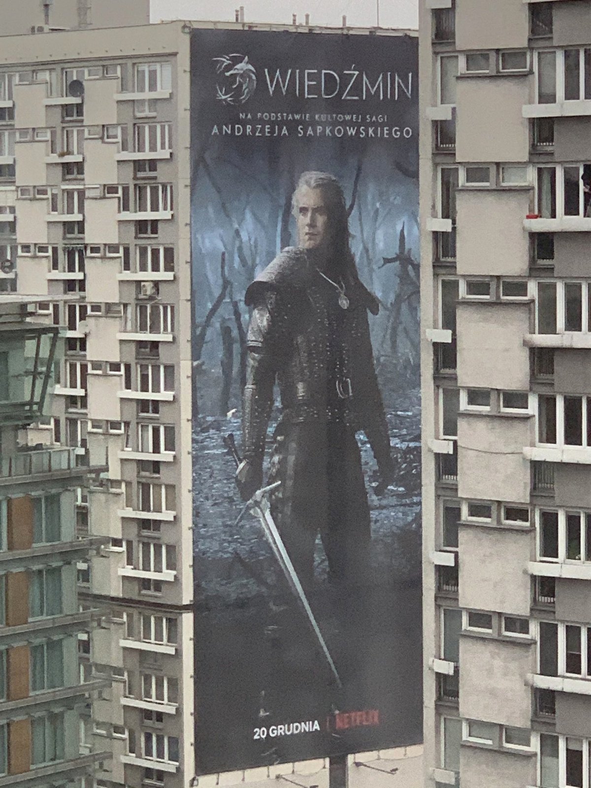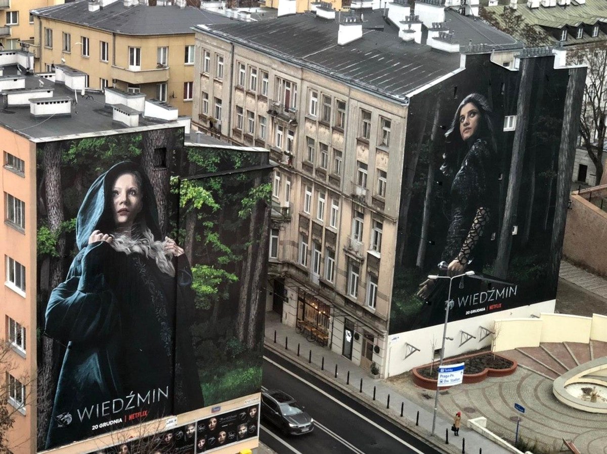 Рекорд по размеру постера пока принадлежит, кажется, Польше. Жители Варшавы могут увидеть Геральта высотой в 12 этажей.