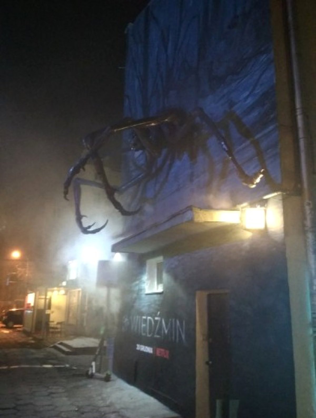 А на одном из варшавских зданий подвесили кикимору из первого эпизода сериала. Ночью тут, должно быть, лучше не гулять.