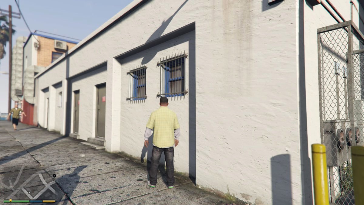 Интересно, что дизайнеры Rockstar очень точно перенесли в Grand Theft Auto 5 и само здание, и окружение: на месте все двери, окна и большая часть труб, есть даже решетки на окнах. Правда, заборчика справа в реальности все-таки не существует.