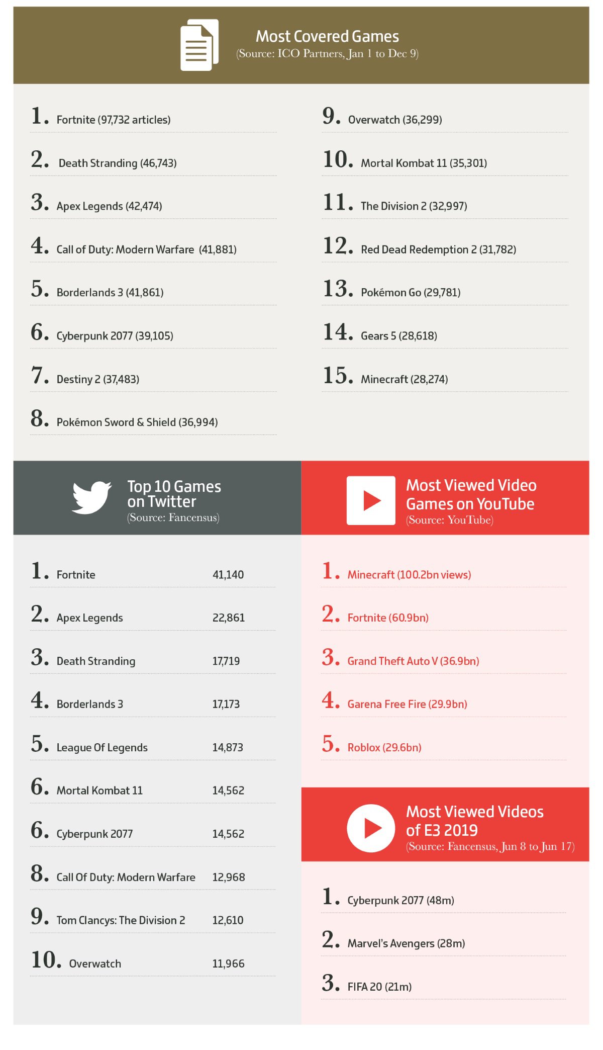 - Самые обсуждаемые в прессе: Fortnite, Death Stranding и Apex Legends.