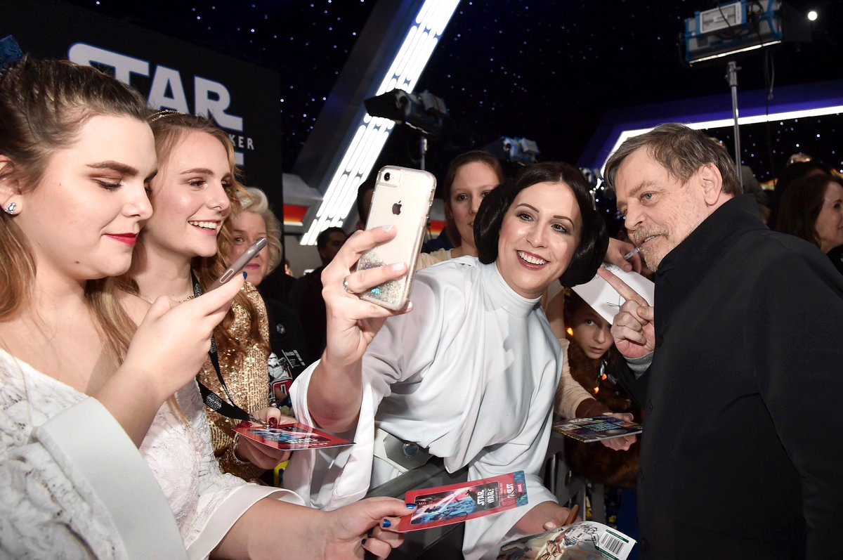Из ветеранов в кинотеатре El Capitan можно было увидеть Харрисона Форда, Иана Макдермида, Марка Хэмилла, Билли Ди Уильямса и композитора Джона Уильямса. Джордж Лукас либо не пришел на премьеру, либо не попал на фотографии.