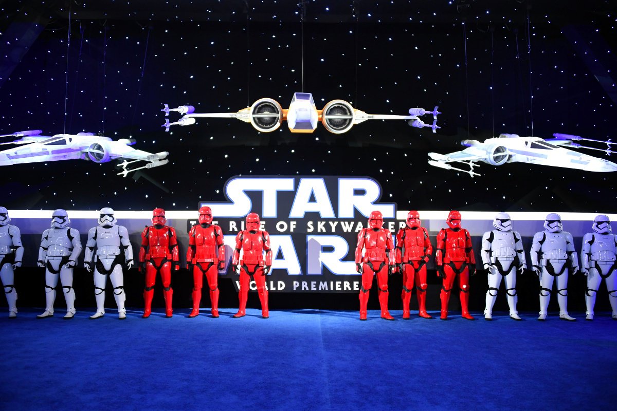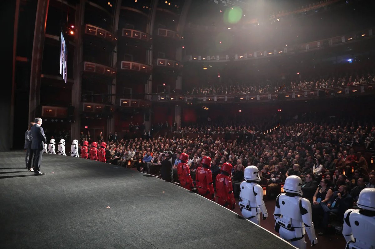 Помимо фанатов-косплееров на премьере присутствовало несколько десятков штурмовиков в броне Первого ордена и алых доспехах, впервые появляющихся в новом фильме. Вот как это выглядело.