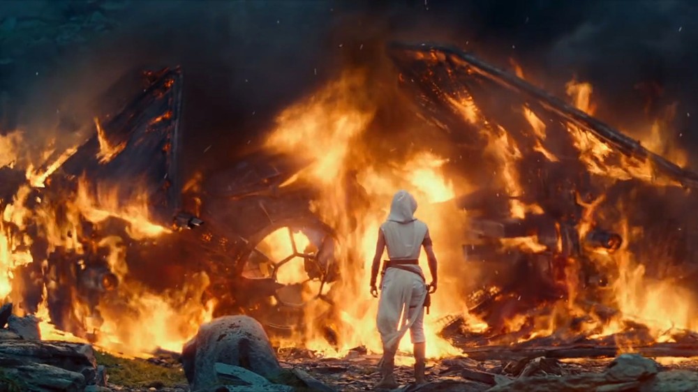 Кайло Рен специально подтолкнул Рей к максимальному использованию силы. При этом, она уничтожает корабль с помощью такой же силы, какой владеет Палпатин. Это был явный намек на то, что героиня может стать Ситхом, но Дисней не решился пойти на такой шаг до конца. Что и сломало данную сцену к чертям.