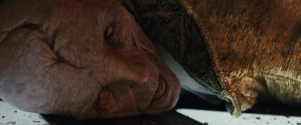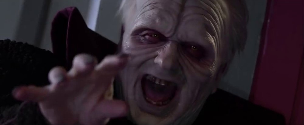 Палпатин - опять же тупо фансервис (даже играет его тот же актер, что в приквелах, мя) и вообще в фильме появляется на пару минут в сумме. Еще и в в потёмках, где его лицо изредка освещают мрачненькие молнии. Ярчайший признак сценарной импотенции. Сам факт его наличия в фильме ясно даёт понять, до какой степени дошел кризис идей во франшизе. Как он выжил, куда свалил, где набрал вес - неважно. Позиционируется как дико ловкий и изворотливый интриган, который всех обдурил в своей многоходовочке, но по факту просто бздит свой текст, хихикает и стоит в своей любимой позе "щас как из ручек молниями жахну". Судя по всему, пока играл в прятки, заделался в инженеры и биотехнологи. Впрочем, всегда есть универсальная отмазка вселенной ЗВ - ну, Неизведанные Регионы! Там можно всё и за это ничего не будет. Хотя в новой трилогии разведки нет в принципе, поэтому о станциях размером с планету и об огромном вражеском флоте узнают в последний момент, случайно подслушав разговор двух алконавтов в третьесортной кантине. И вновь спойлер