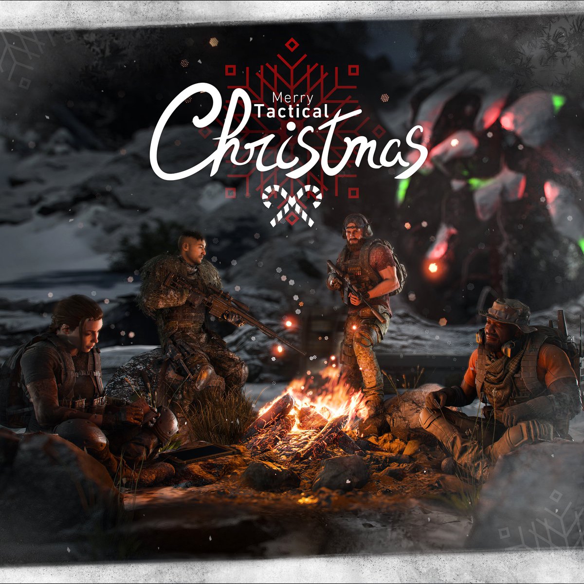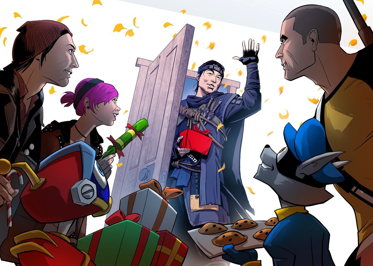 У нас есть новогодняя версия Скорпиона, праздничный член банды Мальштрем из Cyberpunk 2077, жизнерадостные герои Bethesda и Сэм Бриджес из Death Stranding, собирающийся отмечать праздники вместе с товарищами.