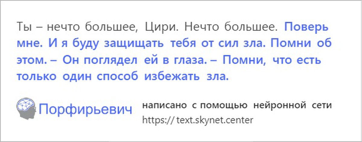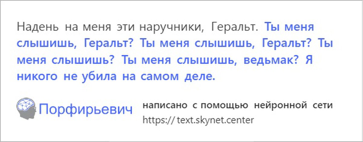 В ход пошли цитаты из книг Анджея Сапковского, из игр CD Projekt RED, и даже неизбежная строчка про чеканную монету. Оказалось, что нейросеть как минимум знает о существовании Геральта и Цири: пару раз она использовала их имена.