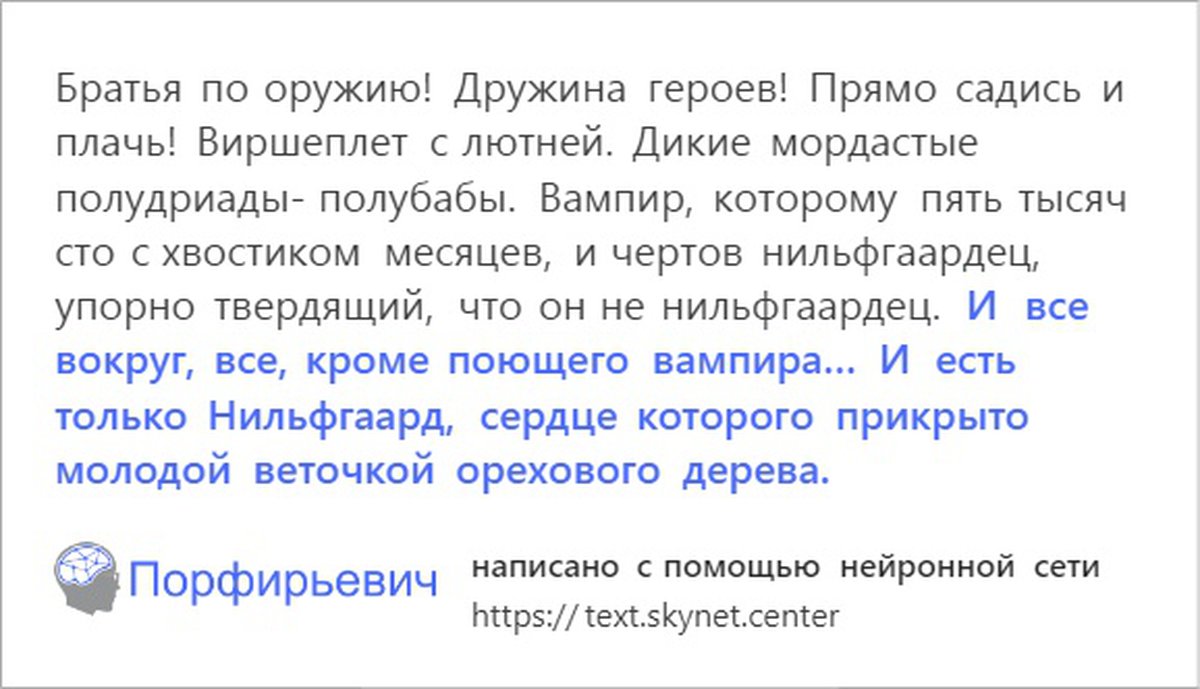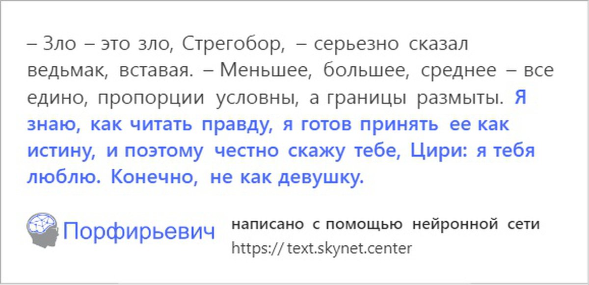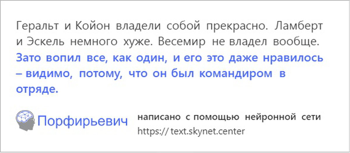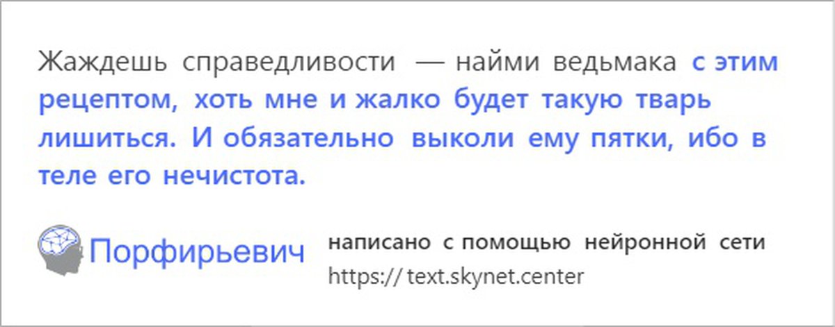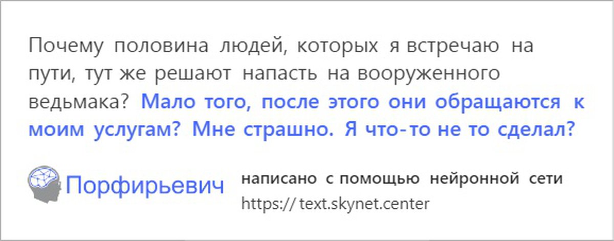 Новое развлечение российского сегмента сети — дописывание предложений с помощью «Порфирьевича», специальной нейросети, обученной на классической литературе. Мы попросили «Порфирьевича» поработать с «Ведьмаком».
