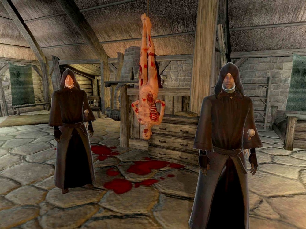 Встретил на просторах Сиродила статую Сангвина. Она мне приказала добавить немного веселья в унылые посиделки одного замка и дала мне для этого заклинание. Пришел, увидел, скастовал: все почетные гости резко лишились одежды. Они естественно сагрились и побежали на меня с кулаками, но их мигом обогнала стража со словами: 'Деньги или тюрьма'. Я был богат на тот момент, дай было расплачусь. Моему спокойствию пришел конец, когда оказалось, что я остался без одежды. Совсем. Пришлось садиться в тюрьму. Позже выяснилось, что мои вещи забрал Сангвин. По прошествии времени он их вернул, а гильдия воров потом сама меня нашла в качестве бывалого заключенного.