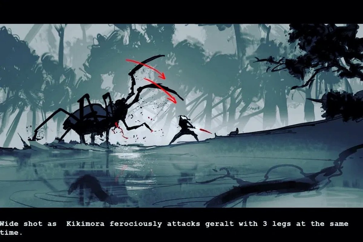 Раскадровки «Ведьмака»: усатый Геральт и бой с другой кикиморой