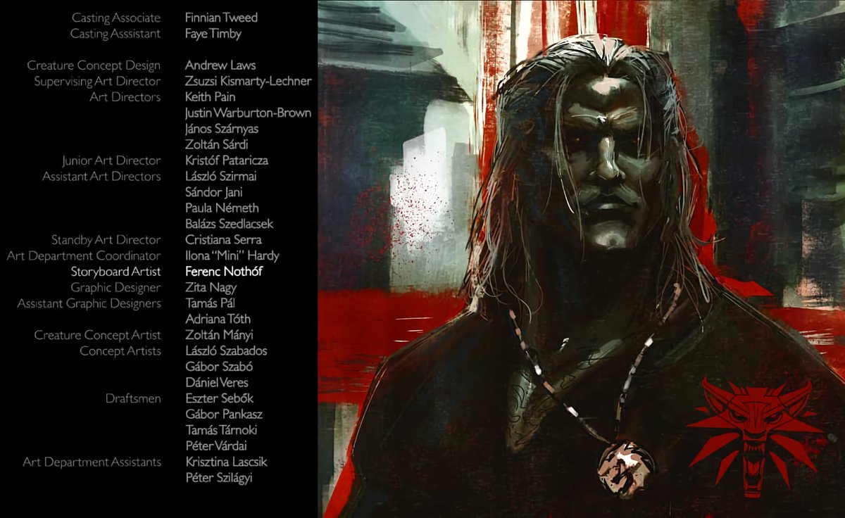 Вместе с раскадровками сцены боя с кикиморой Ференц опубликовал арт, изображающий Геральта в Блавикене. Кажется, в какой-то момент ведьмака собирались сделать усатым.