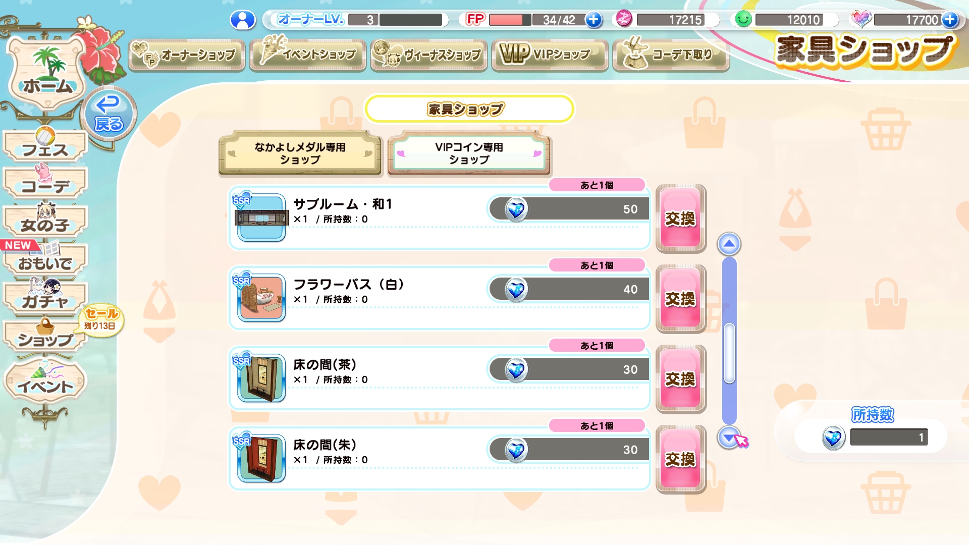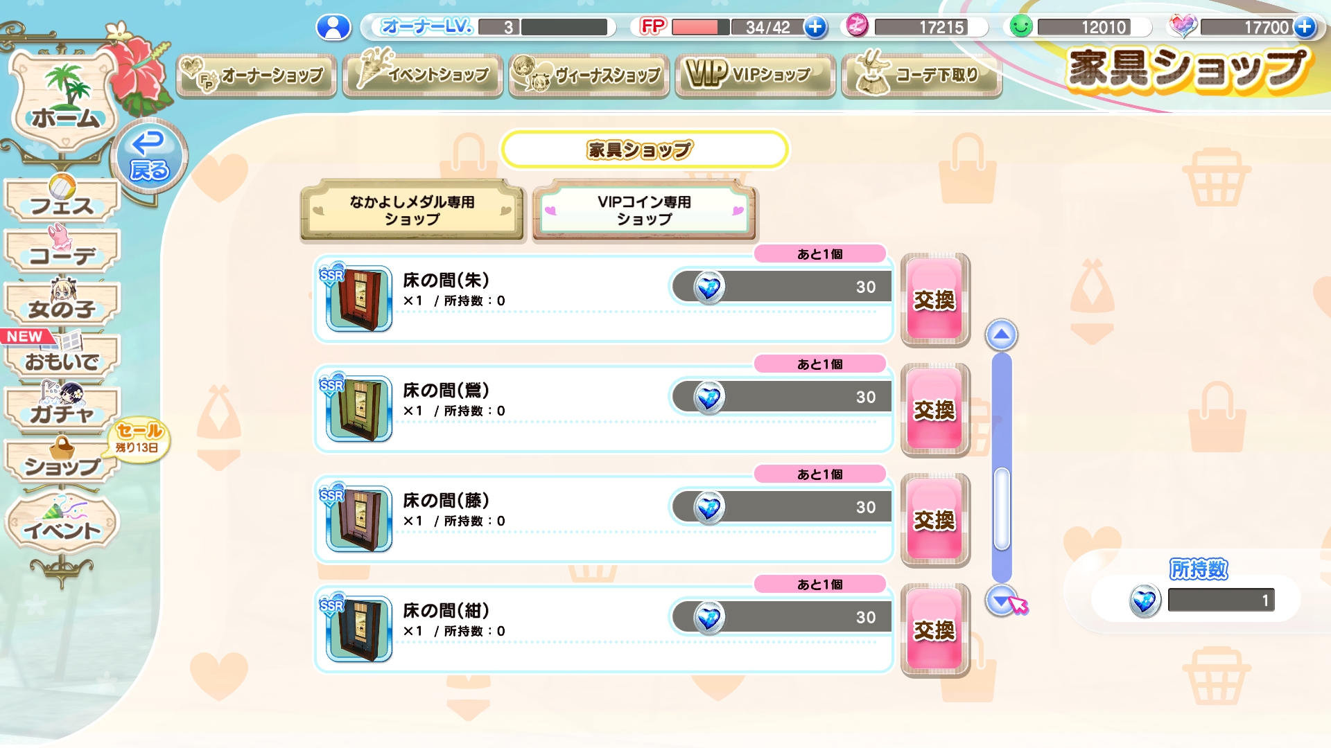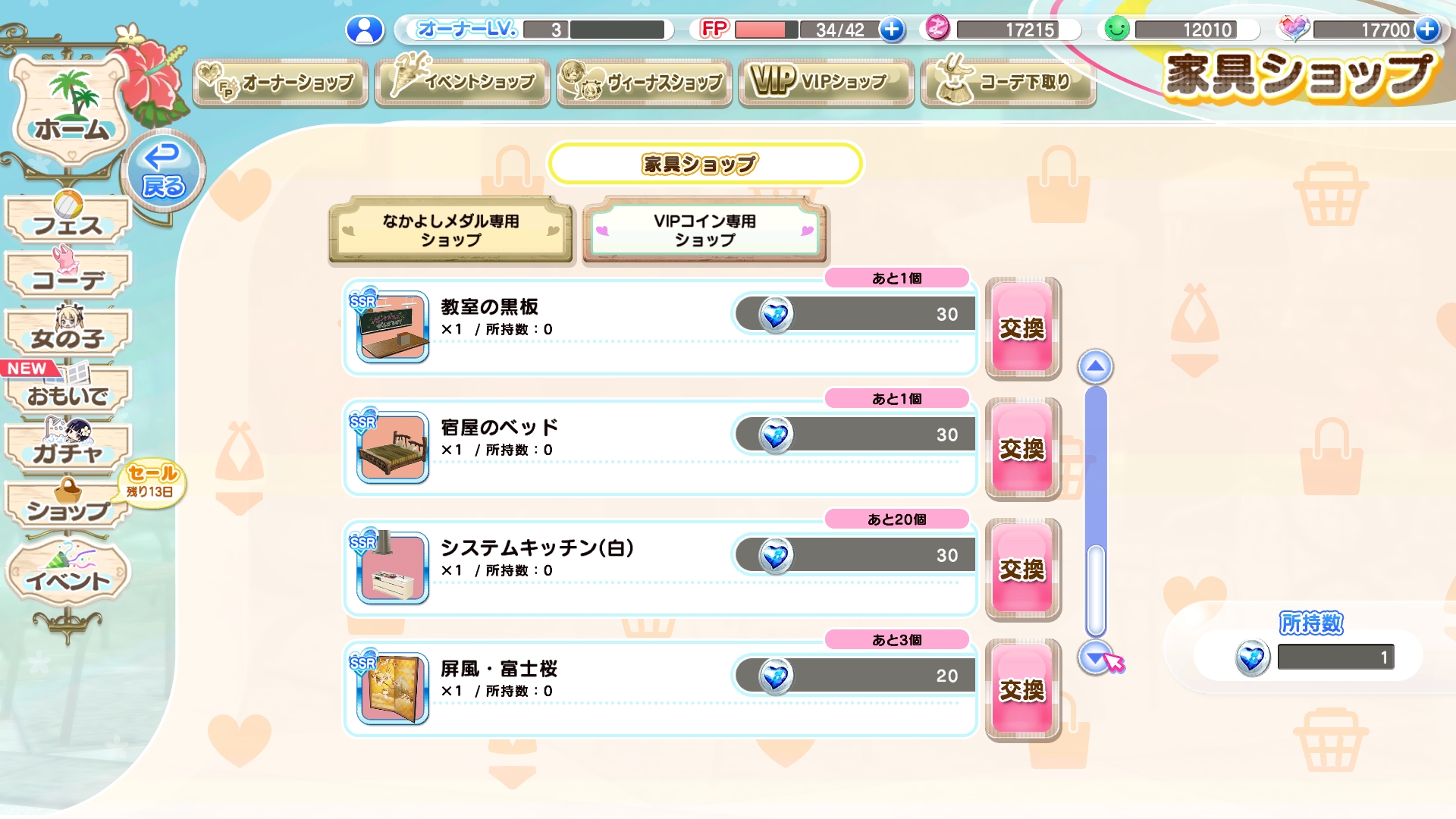 Но бог с ним с ивентами, меня эти новогодние костюмы не цепляют. От чего я реально был вне себя, так это от магазина мебели. Просто и кратко: одна страница мебели за VIP сердца в англоязычной версии и несколько в японской... Скриншоты привел японской версии, без одного листа, ибо это то же самое, что и в англоязычной версии.