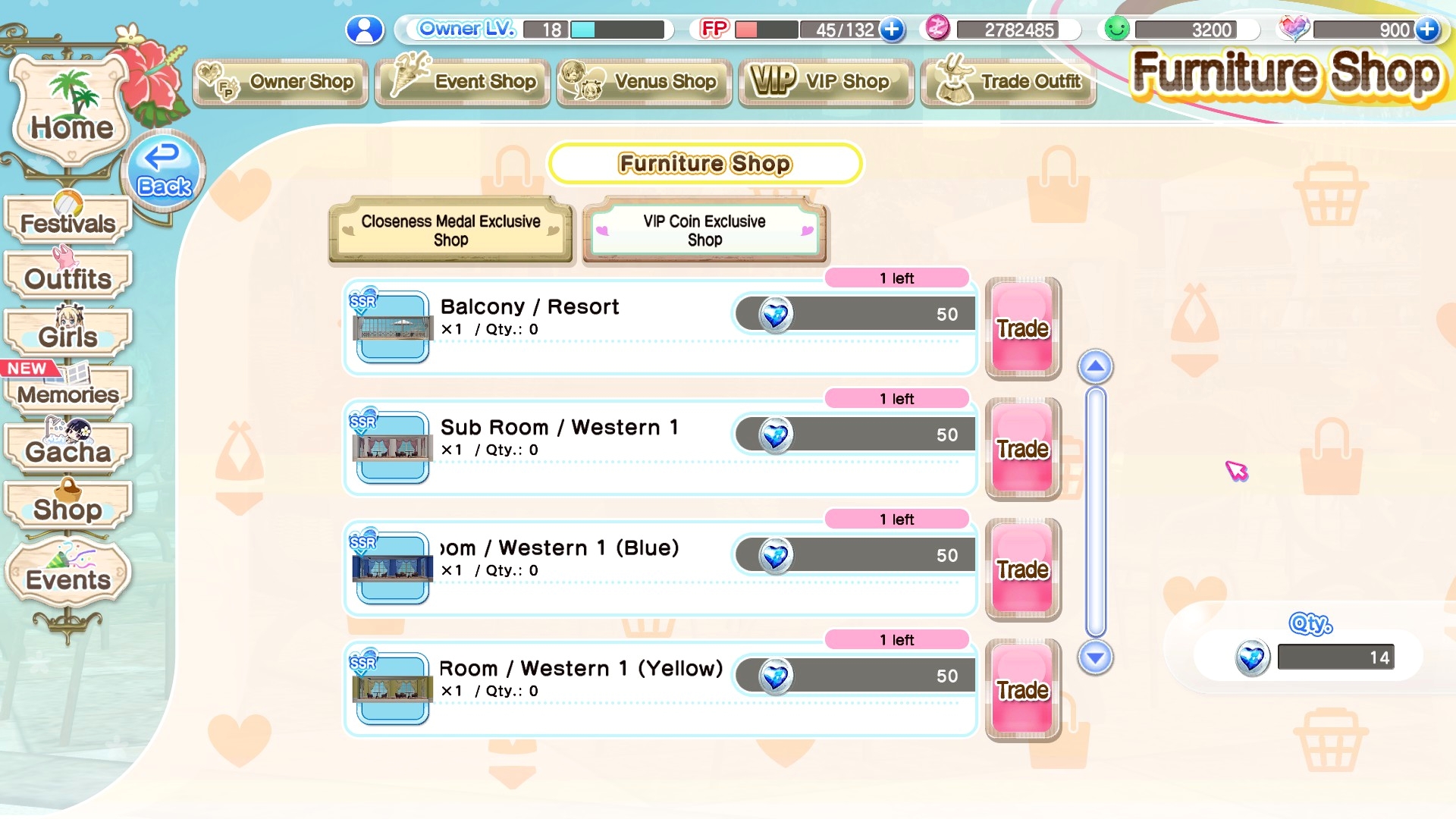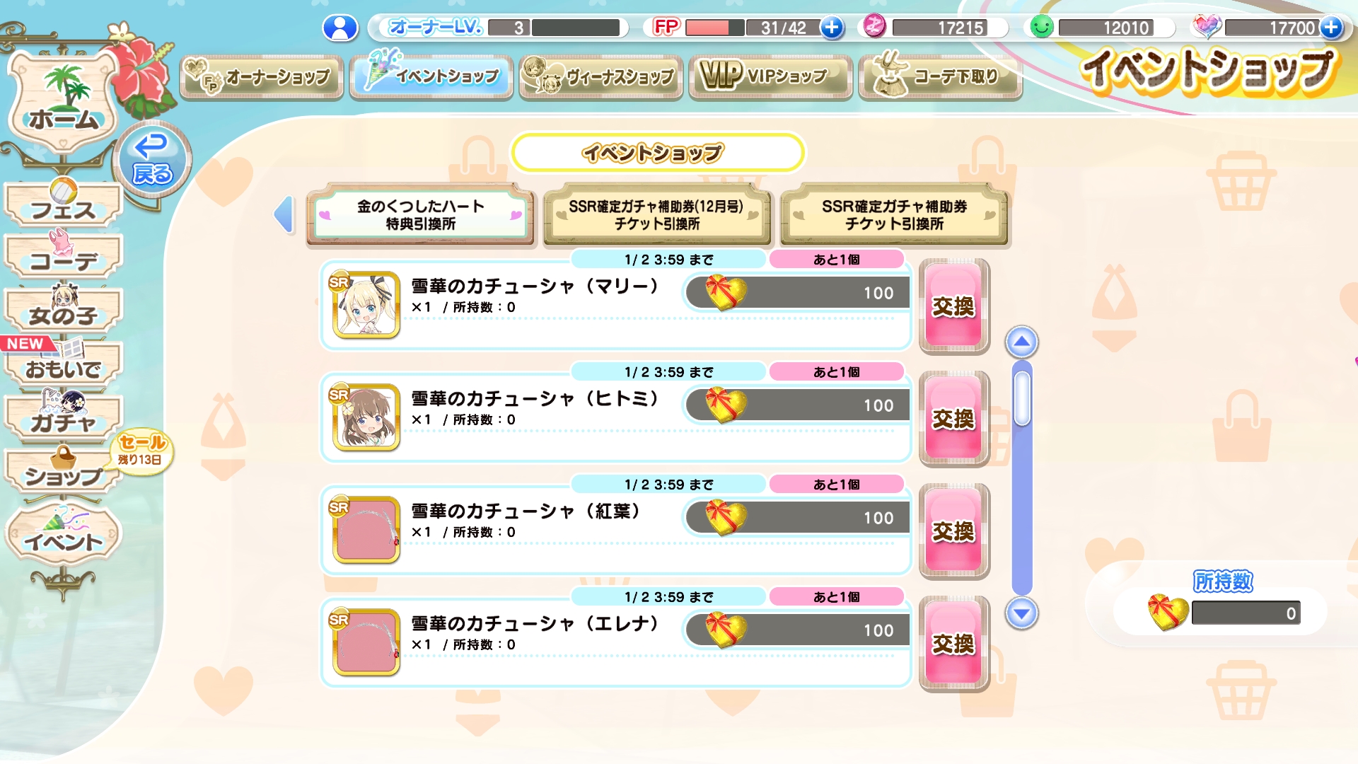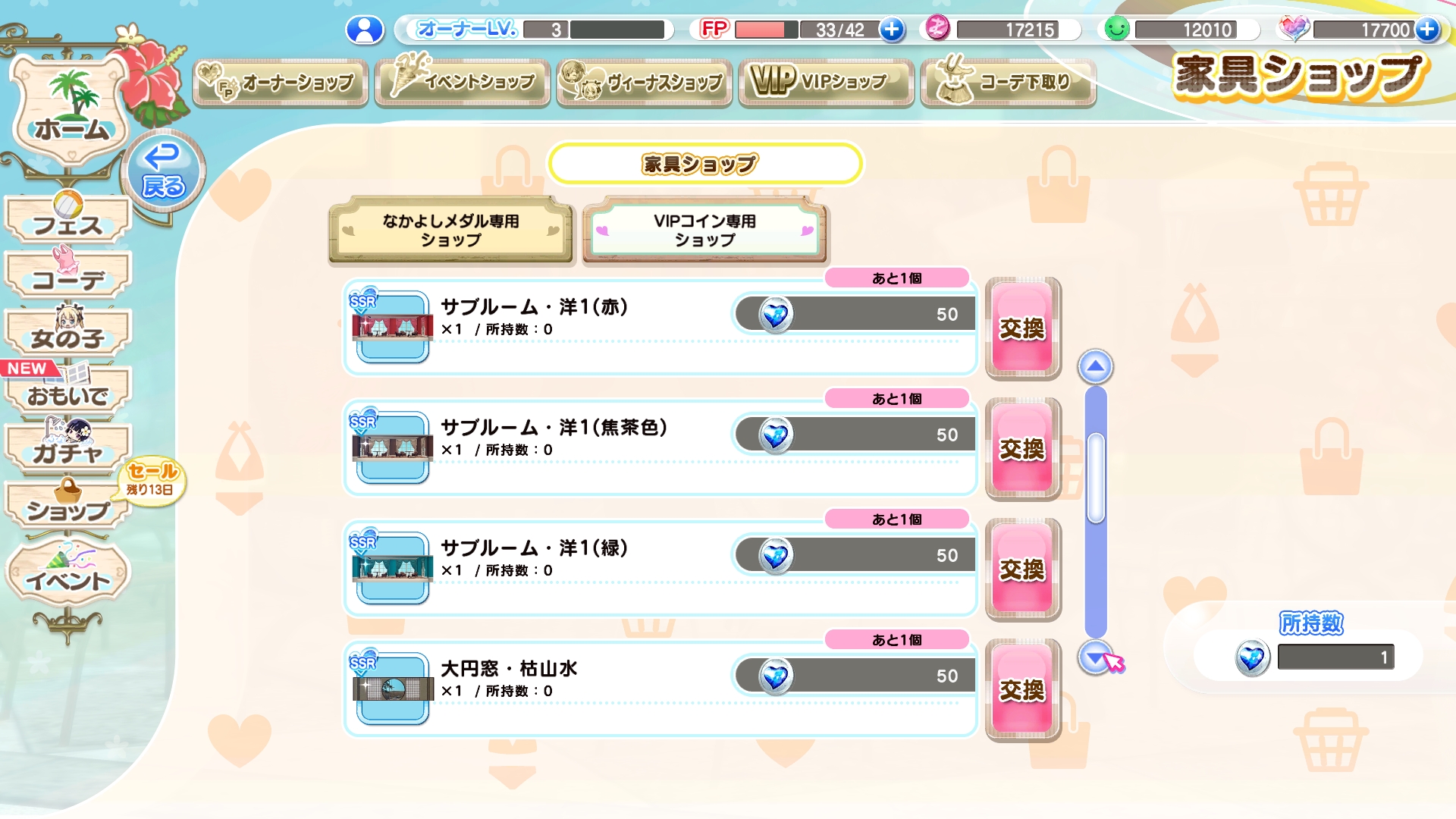 Но бог с ним с ивентами, меня эти новогодние костюмы не цепляют. От чего я реально был вне себя, так это от магазина мебели. Просто и кратко: одна страница мебели за VIP сердца в англоязычной версии и несколько в японской... Скриншоты привел японской версии, без одного листа, ибо это то же самое, что и в англоязычной версии.