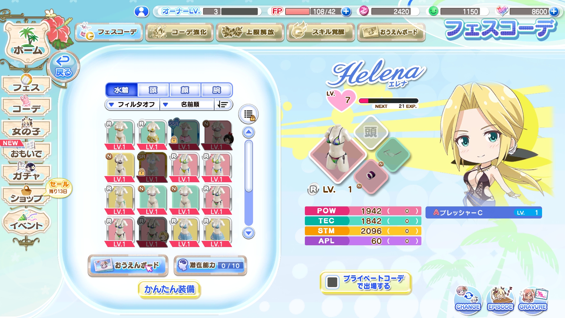 Девочки. Вот с этого момента и начинаются главные различия между японской и англоязычной версиями. А главное отличие японской версии – больше девочек! Да, в то время, когда я ждал новых обновлений в англоязычной версии, ждал каждую новую девочку... Японская версия давала новых гораздо чаще. Но так как японскую версию я запустил давным-давно, когда этих девочек ещё не было, чутка поиграл и забросил ибо всё на японском языке – я выбрал ту, к которой лежит душа, и которая у меня в англоязычной версии – Хелену Дуглас. Исходя из этого, посмотреть на игровые модели эксклюзивной японской версии получится, но не на всех.