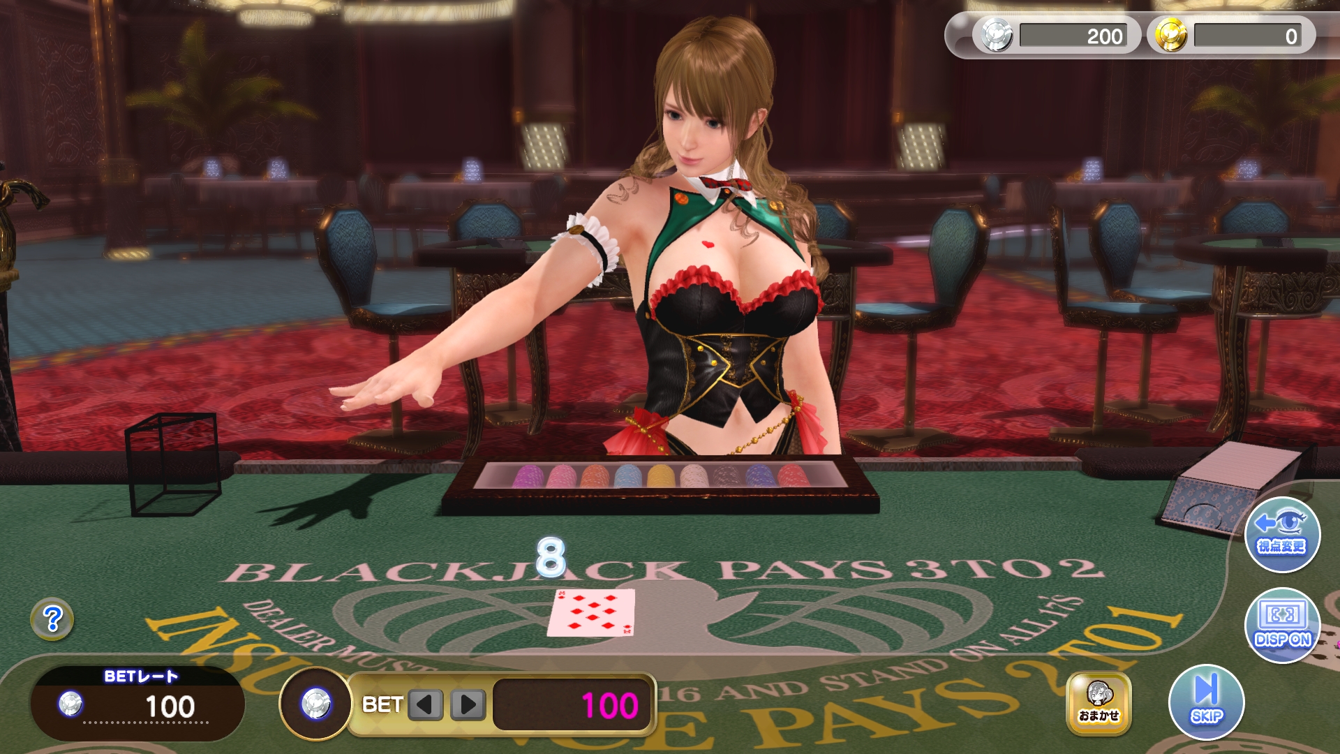 Разумеется, играть в Black Jack я не умею, тем более на японском языке, поэтому доверился Хелене. Играть приходится с другими девушками из Dead or Alive, и подбор игроков происходит случайным образом. За победу даются как серебряные монеты, так и золотые.