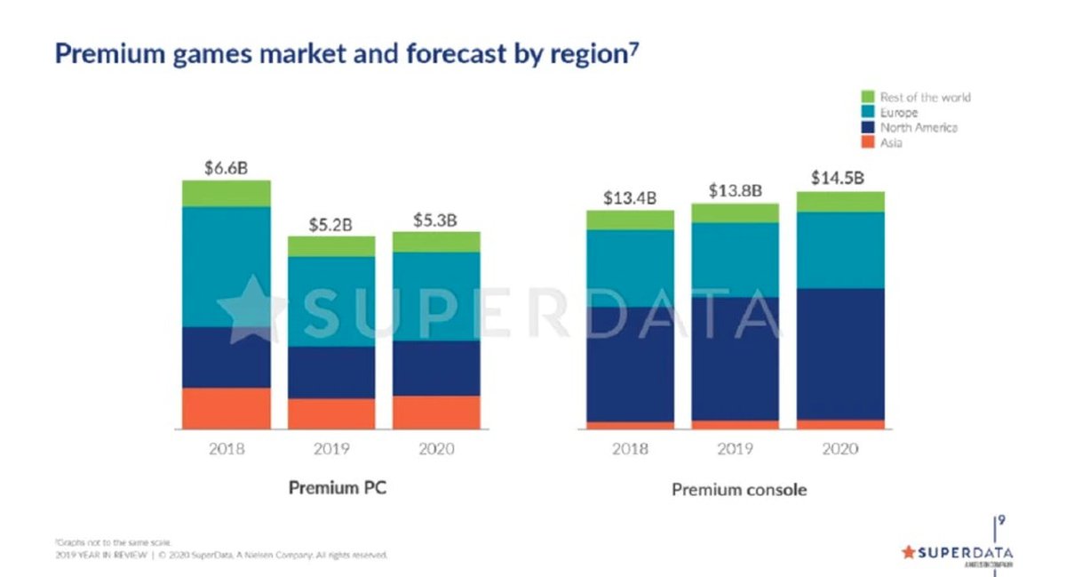 Доходы платных игр в 2019 году упали, в основном из-за PC. Снижение выручки на этой платформе составило $1.4 миллиарда, выручка на консолях выросла на $400 миллионов.