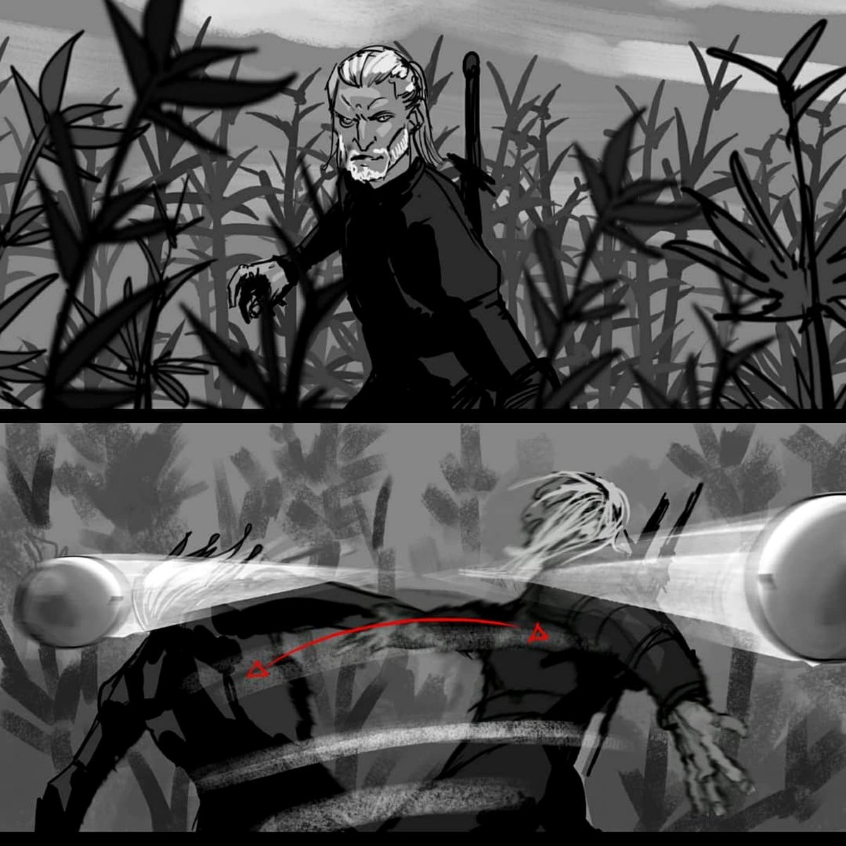 Прямо как в The Witcher 3: другой Геральт на раскадровках «Ведьмака»