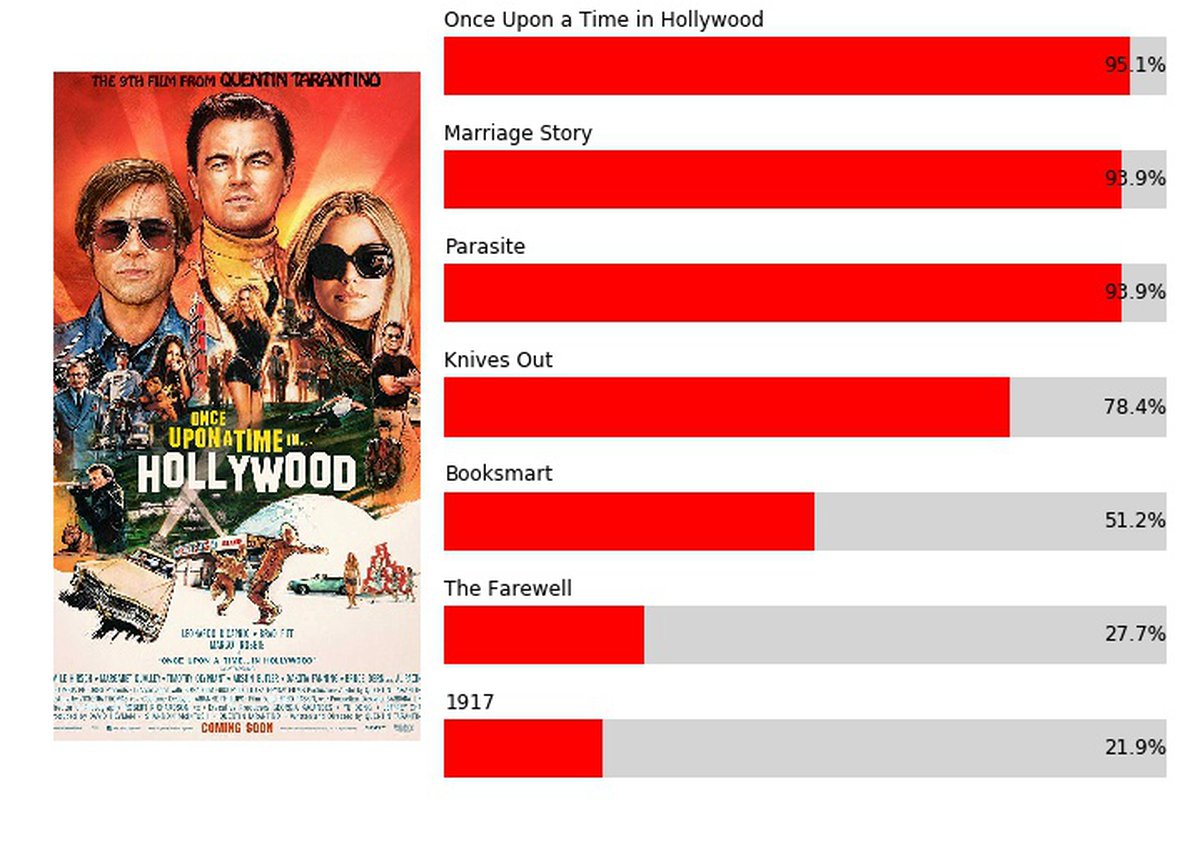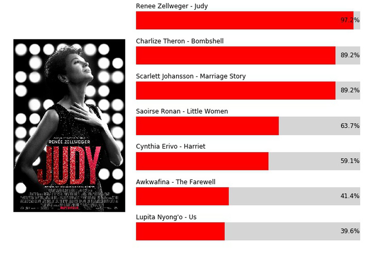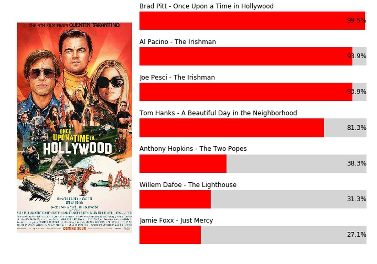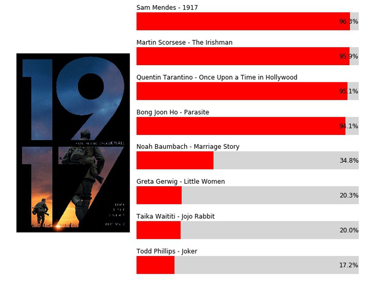 Для каждого фильма, актера или режиссера Бен рассчитывает степень вероятности попадания в список номинатов. За несколько дней до официального объявления номинантов премии 2020 года Заузмер опубликовал собственное предсказание.