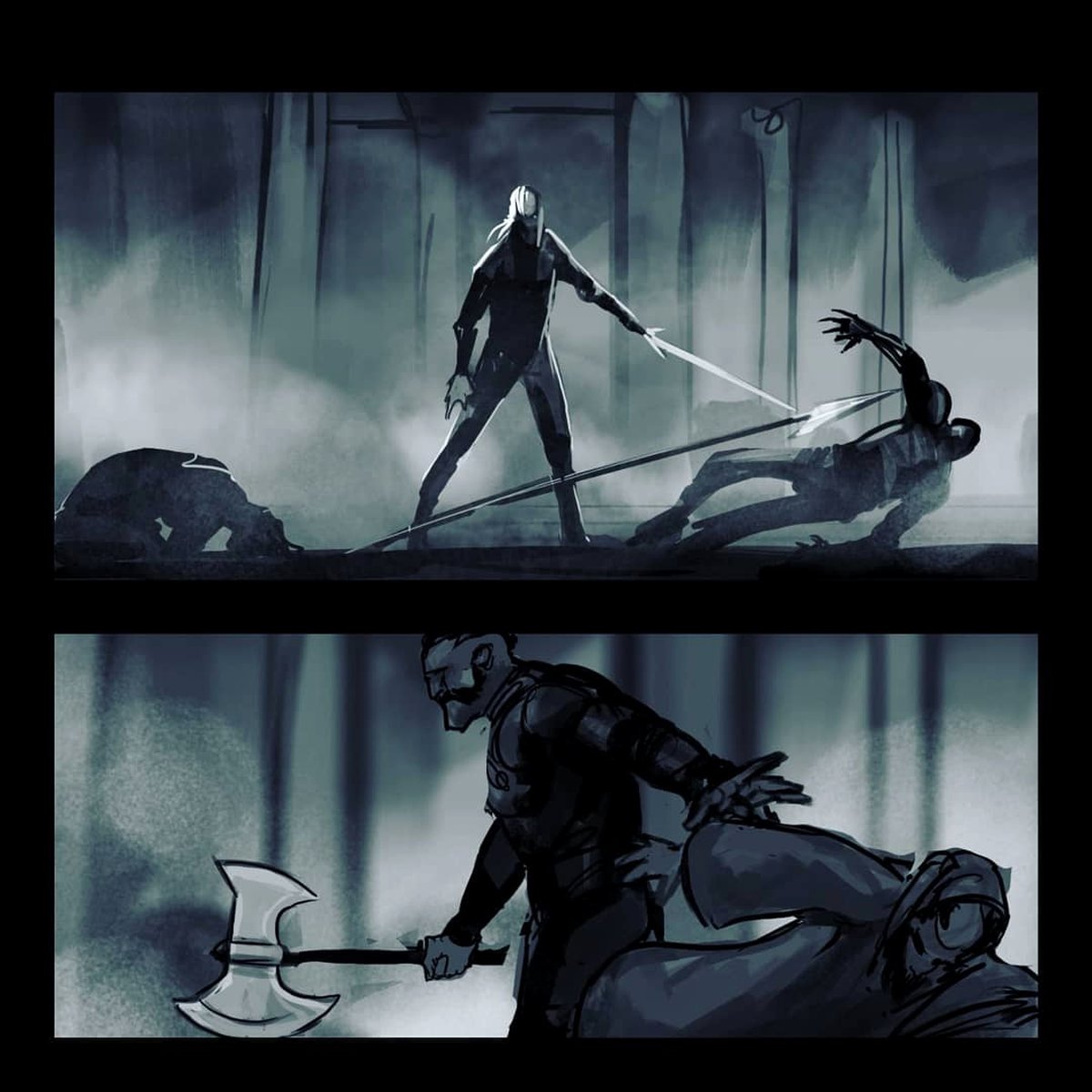 Так или иначе, мы знаем, как должна была выглядеть та битва. На артах Ференца показаны ключевые моменты всего сражения; бойцы Калантэ захватывали Мышовура и вступали в битву с Геральтом, едва не одерживая победу.