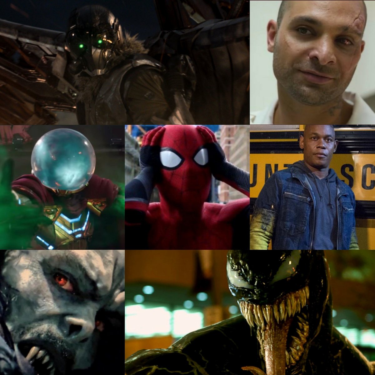 Пока Паук прямо сталкивался только с двумя из них самим Стервятником, попавшим в тюрьму, и Мистерио, побежденным в «Вдали от дома». Однако в фильмах уже появлялись Шокер, Скорпион и Веном; правда, оригинальную Шестерку собрал Доктор Осьминог.